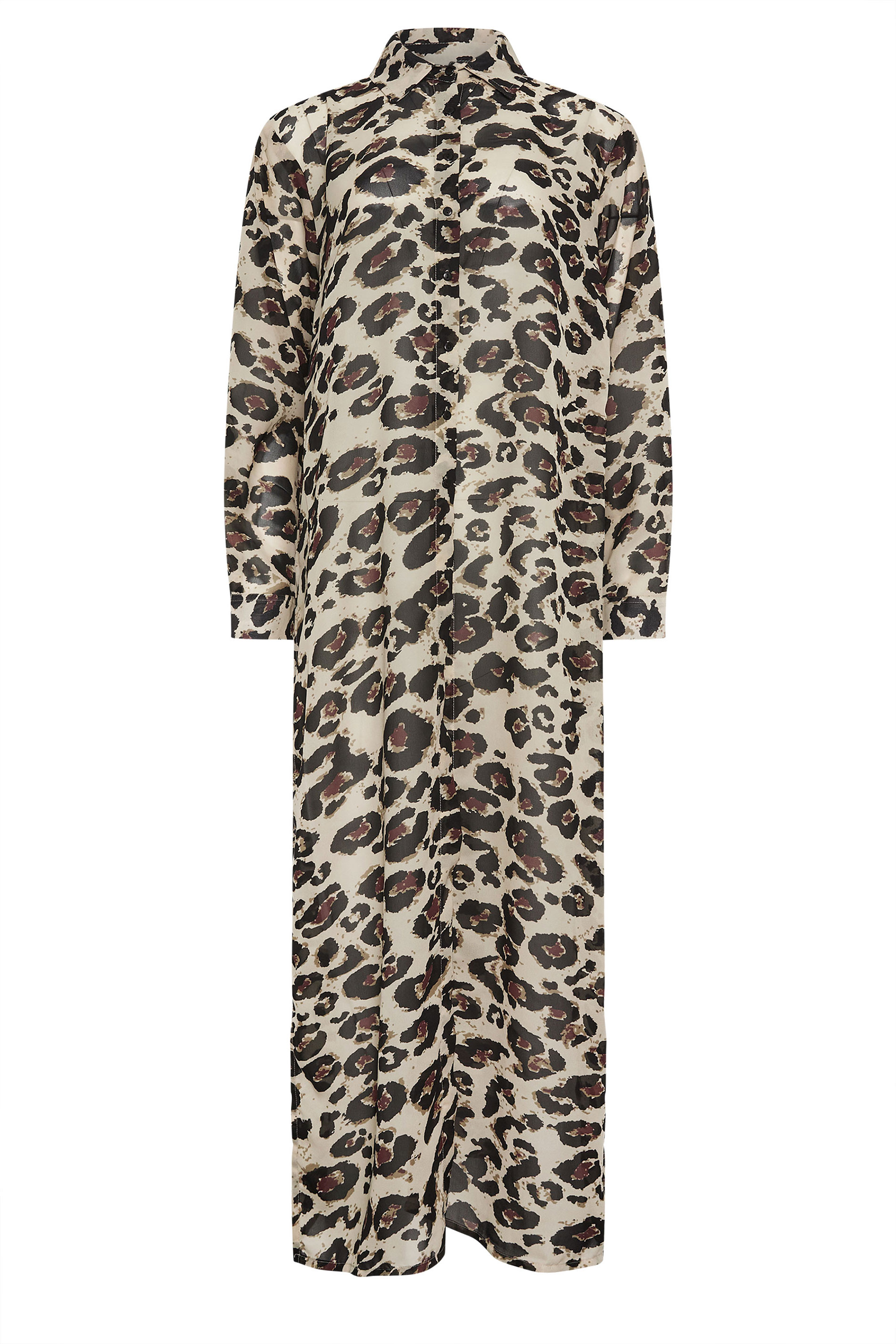 Perfect for beach days! Made from a comfortable woven fabric this shirt features long sleeves, a maxi length, a leopard print and a classic collar. Style with a bikini and sandals for a must-have Summer look.