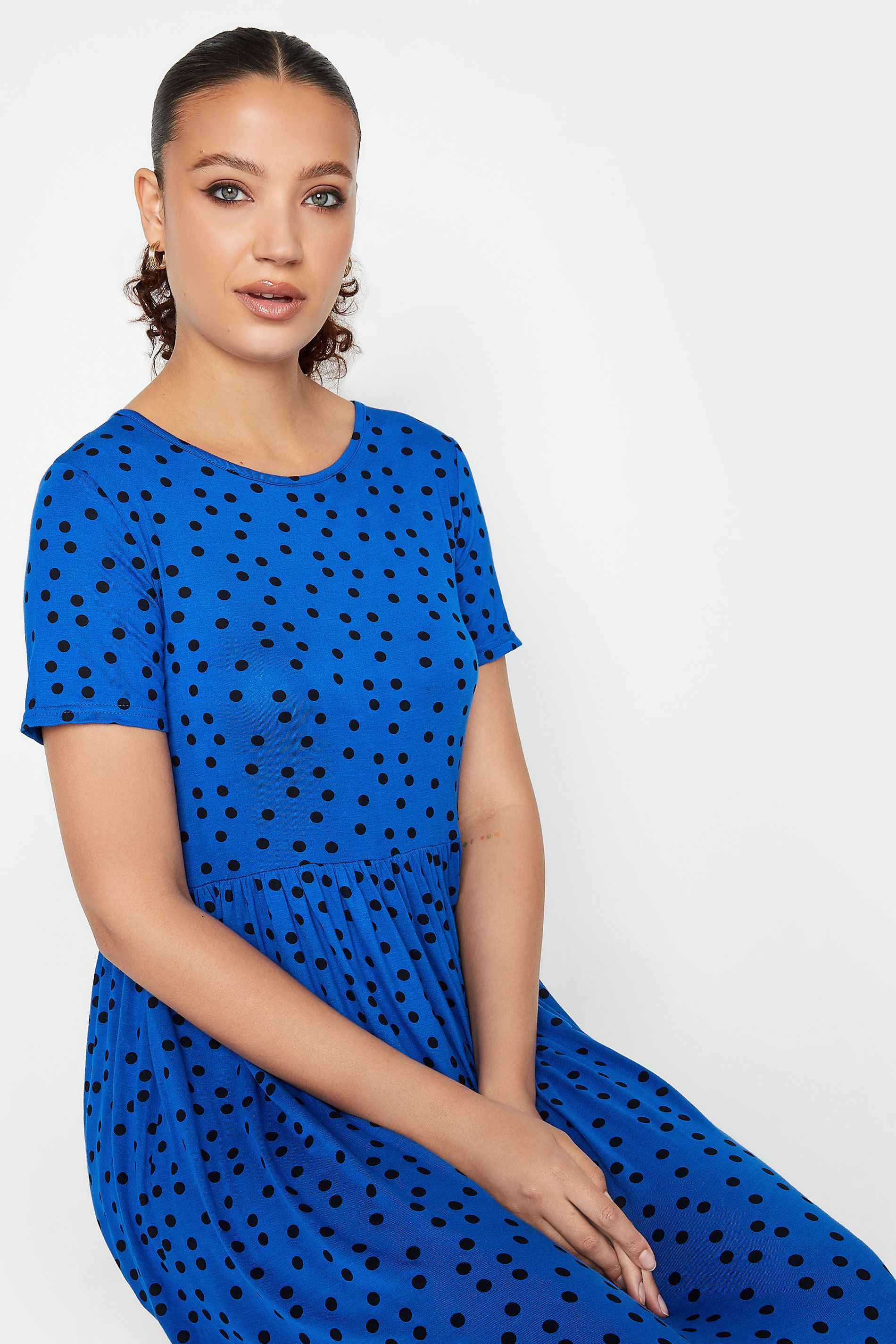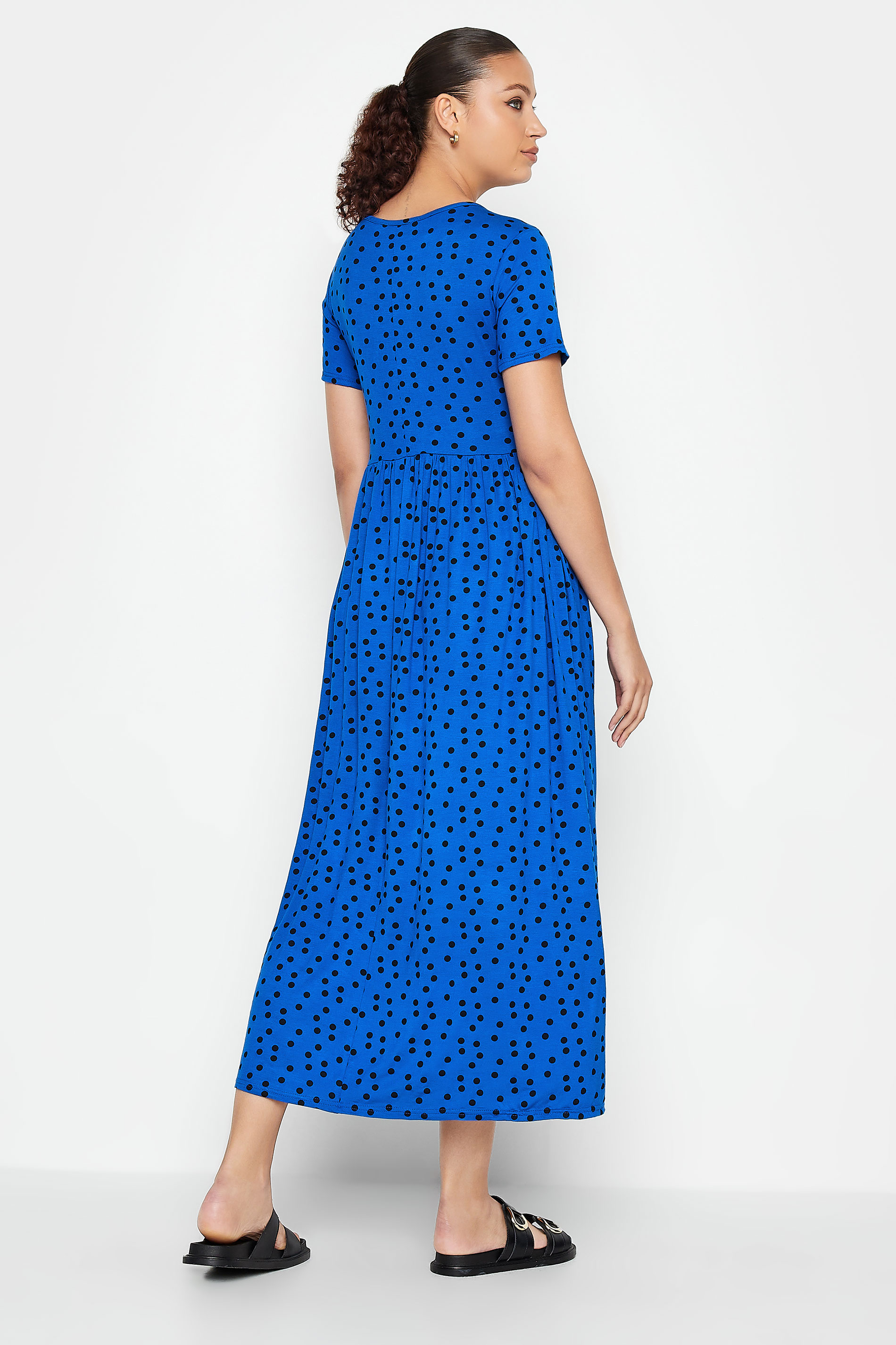 The perfect summer dress. Made from a comfortable jersey fabric, this dress features a maxi length, short sleeves, and a scoop neckline. Style with sandals and a shoulder back for a cute garden party look.