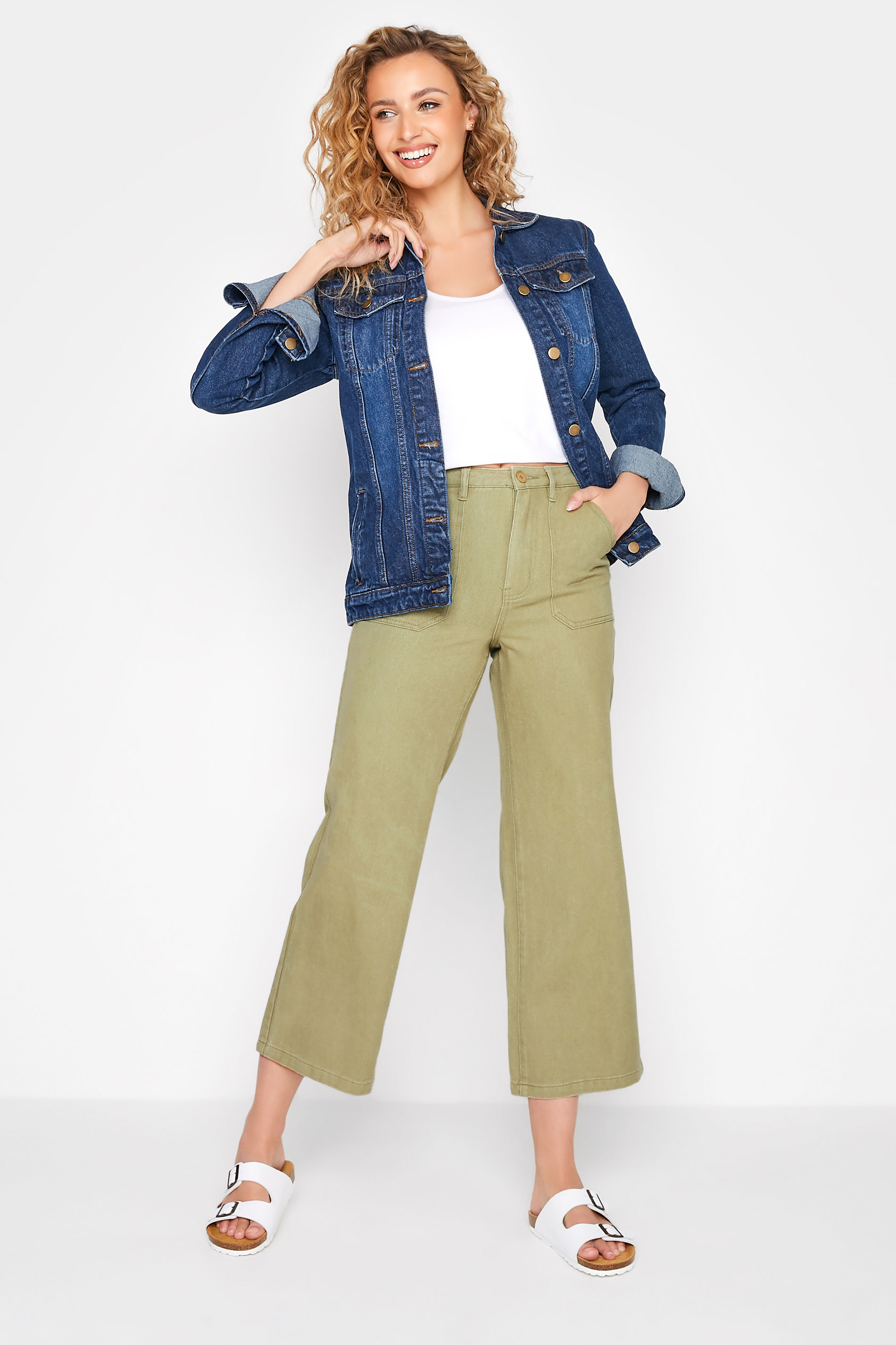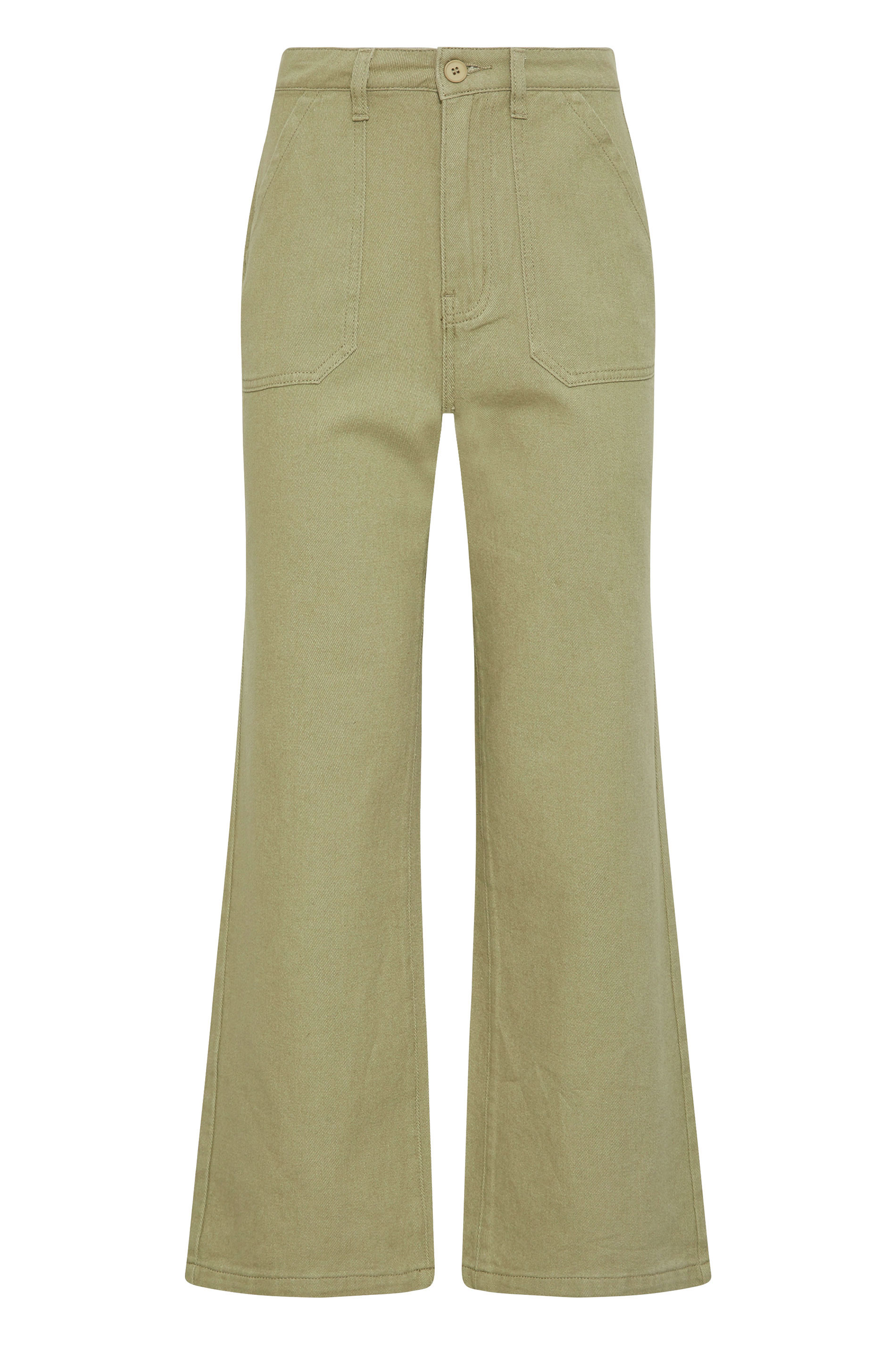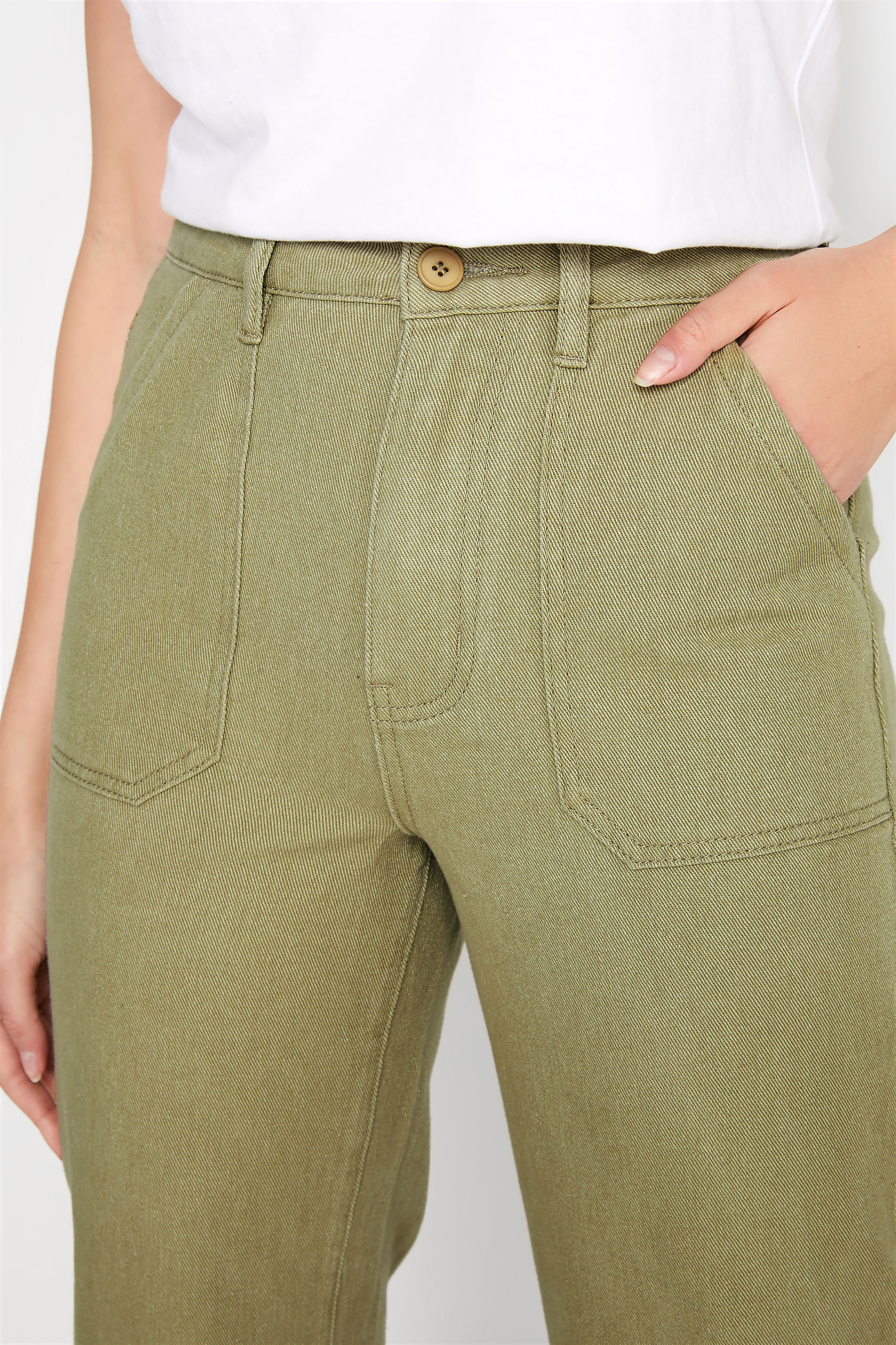 • LTS Tall Green Cotton Twill Wide Leg Cropped Trousers