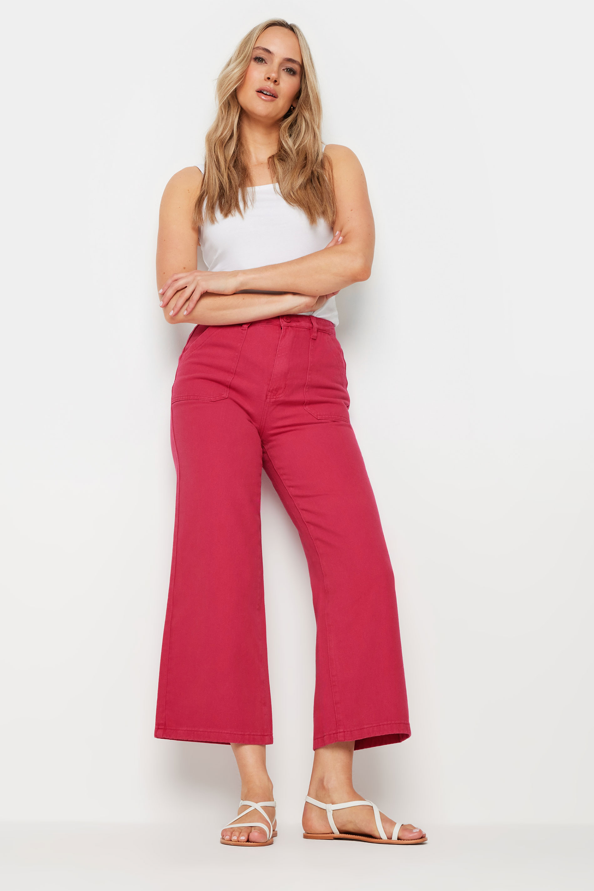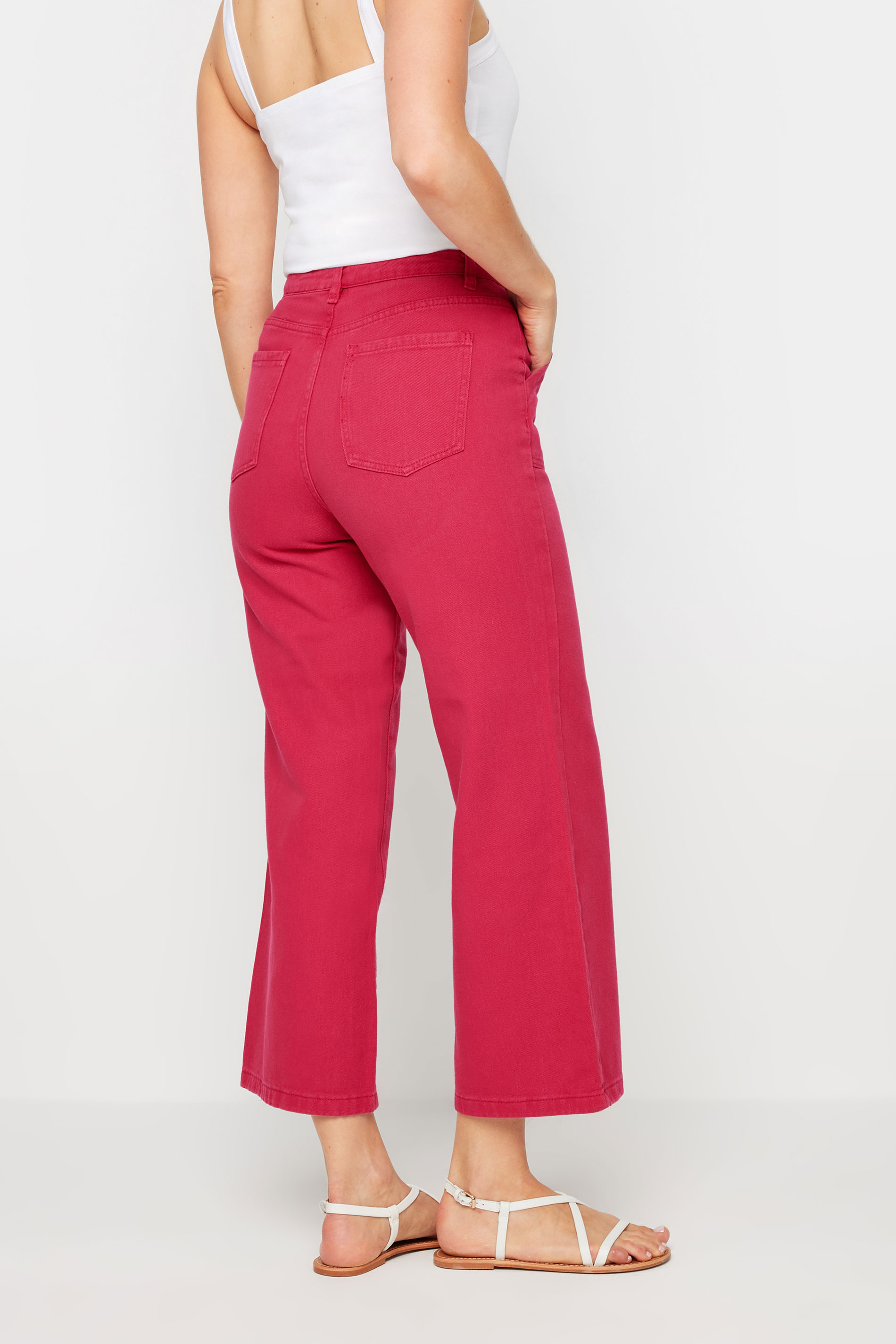 • LTS Tall Bright Pink Cotton Twill Wide Leg Cropped Trousers