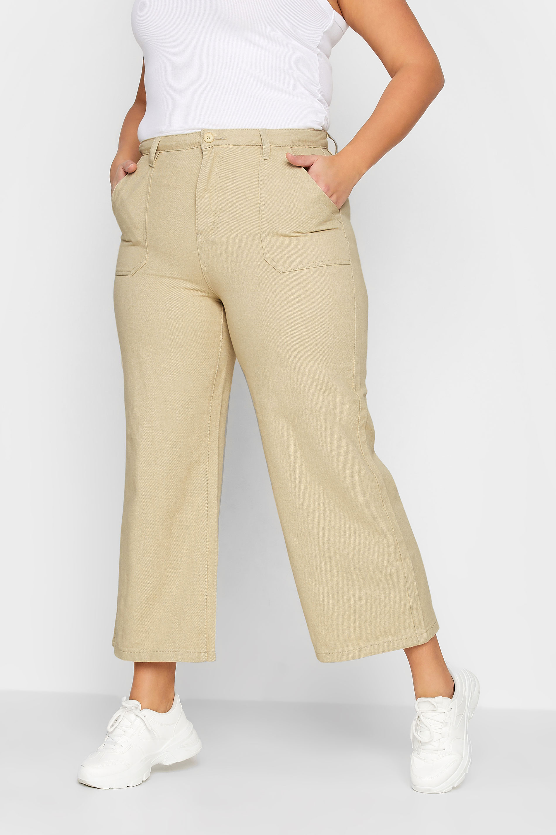 LTS Tall Cream Cotton Twill Wide Leg Cropped Trousers 270397