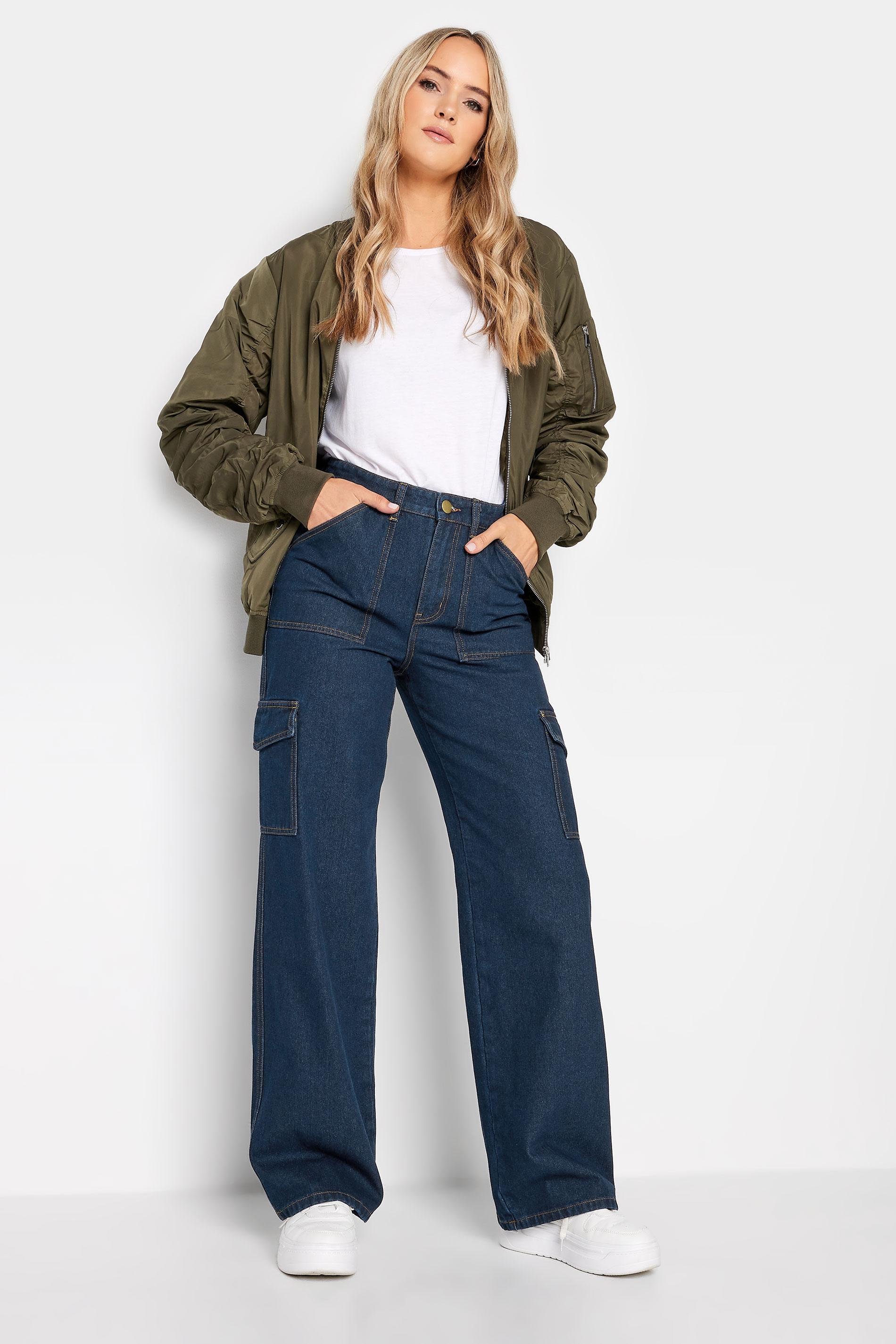 Stay on-trend this season with these must-have cargo jeans. Made from a comfortable cotton fabric, they feature a wide leg style, high waisted design and cargo pockets. Pair with a waistcoat and trainers for a look you can feel confident in.