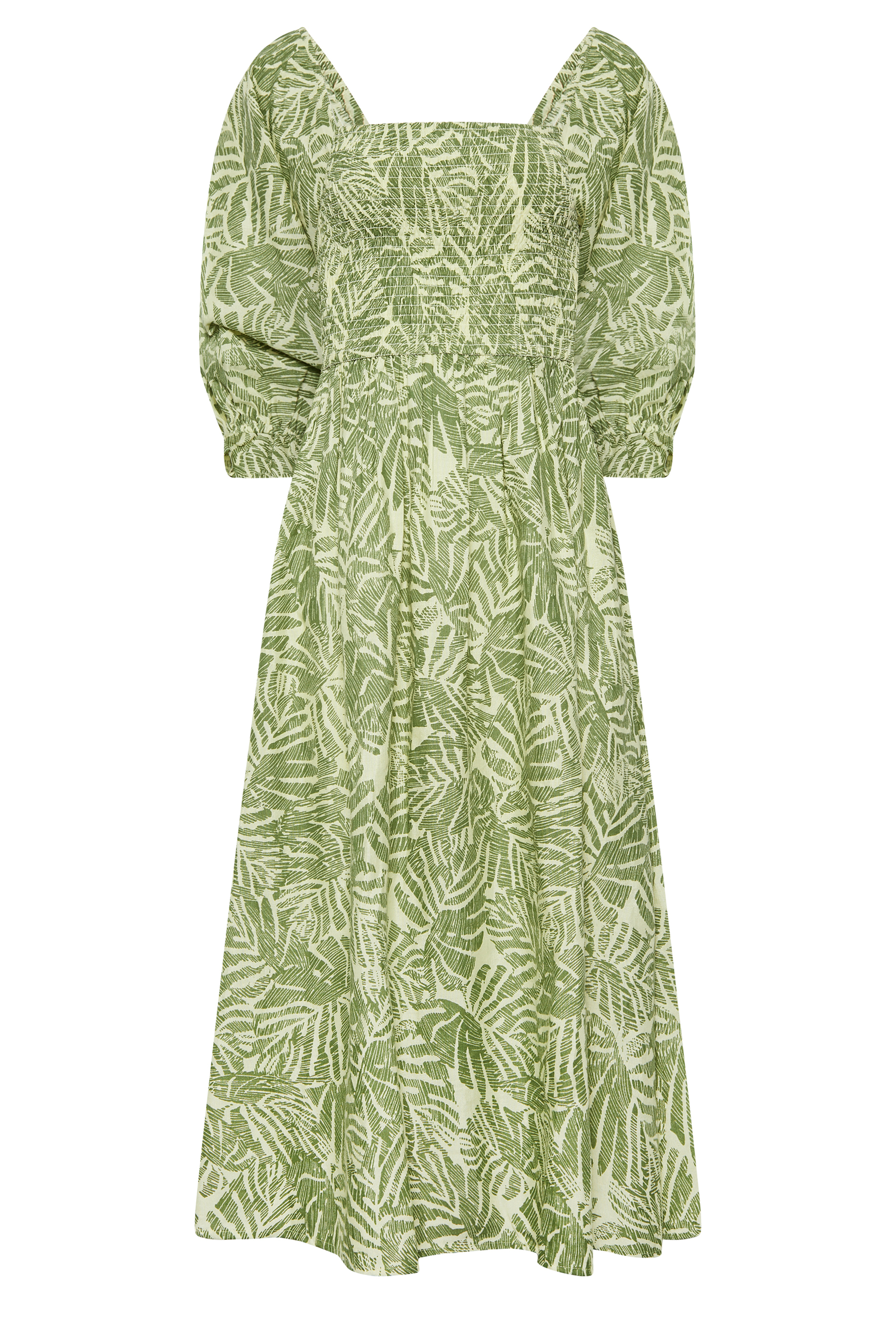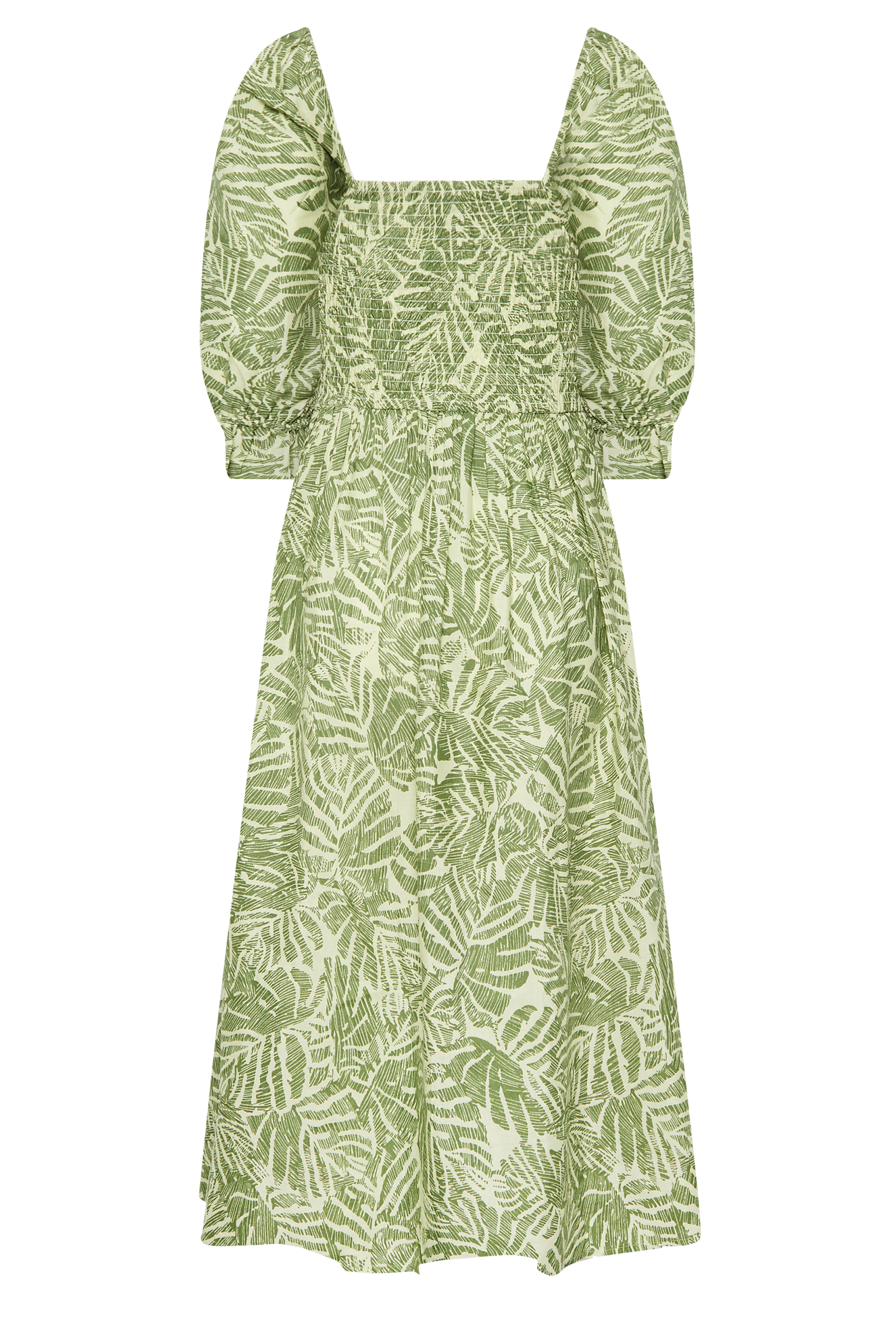 Perfect for the warmer seasons ahead! Made from a comfortable cotton fabric this dress features a midaxi length, a tropical print, long sleeves, and a square neckline. Style with trainers for a casual and stylish look.