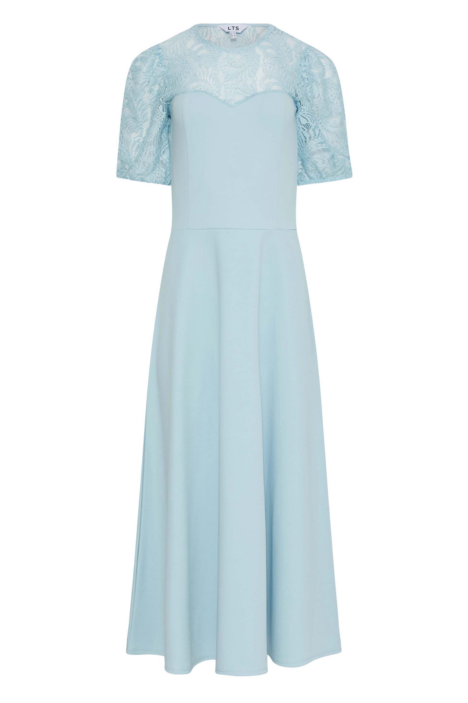 Dress to impress. This LTS midi dress is created in a comfortable jersey fabric and features lace details with short sleeves and a scoop neckline. Style with barely there heels and a clutch bag for an instant polished look that is ready for your evening plans.
