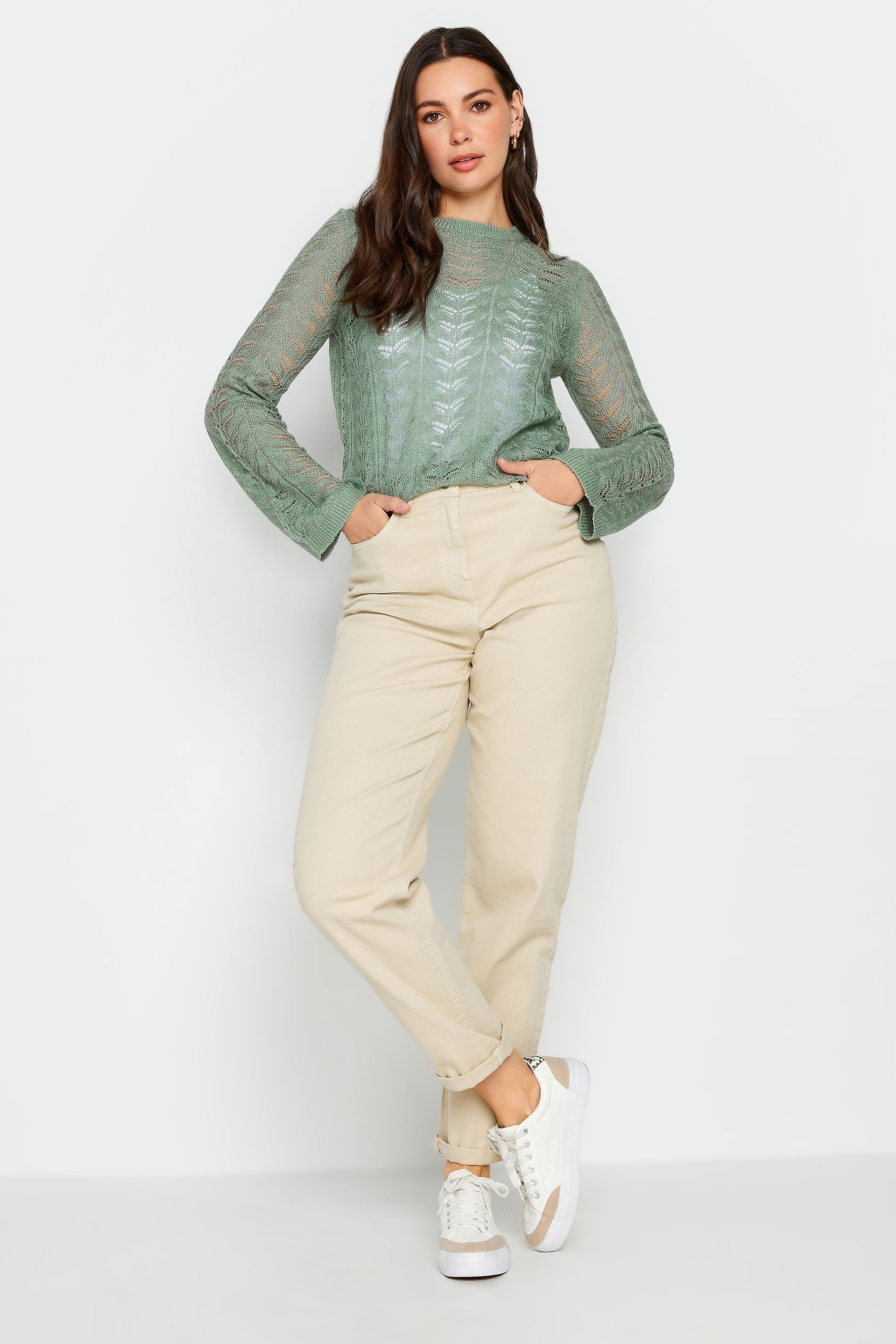 The perfect spring style to add to your wardrobe this season. Made from a soft knitted fabric, this jumper features a pointelle stitch design, crew neckline and long sleeves. Layer over a vest and jeans for a comfortable daytime look you'll be reaching for all season long.