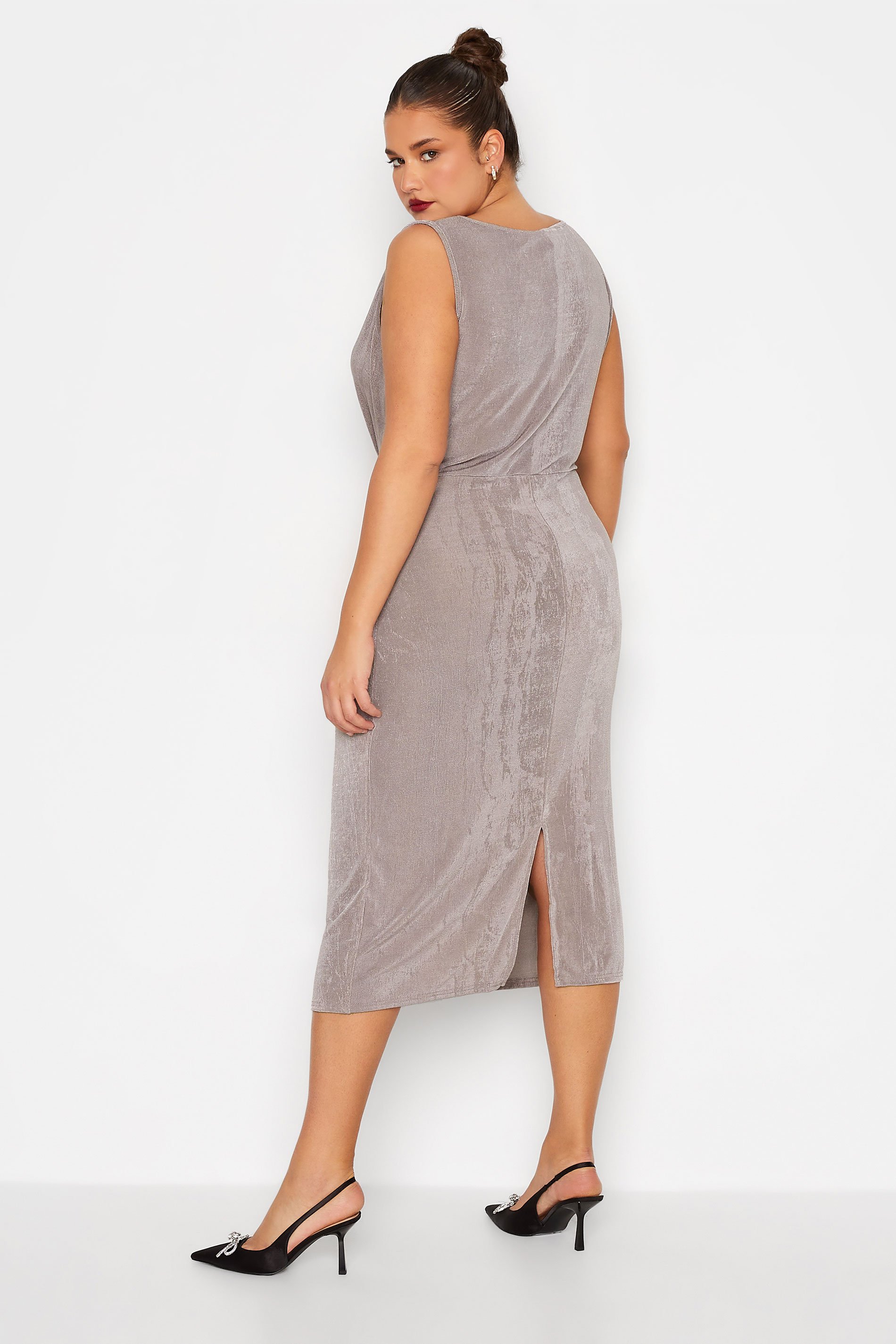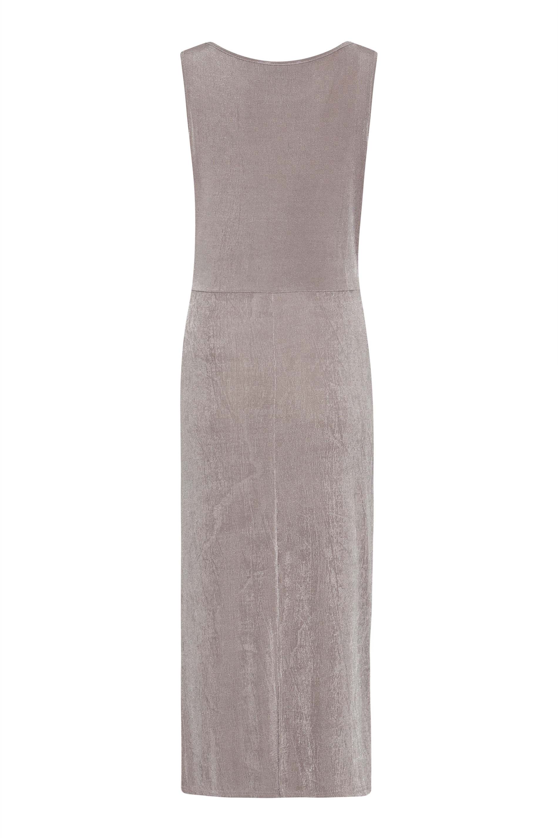 Elevate your occasionwear with this LTS silver dress. Made from a soft woven fabric, it features a scoop neckline, knot front, back split hem and in a sleeveless design at a midi length. Style with your go-to heels and clutch bag for effortless ease.