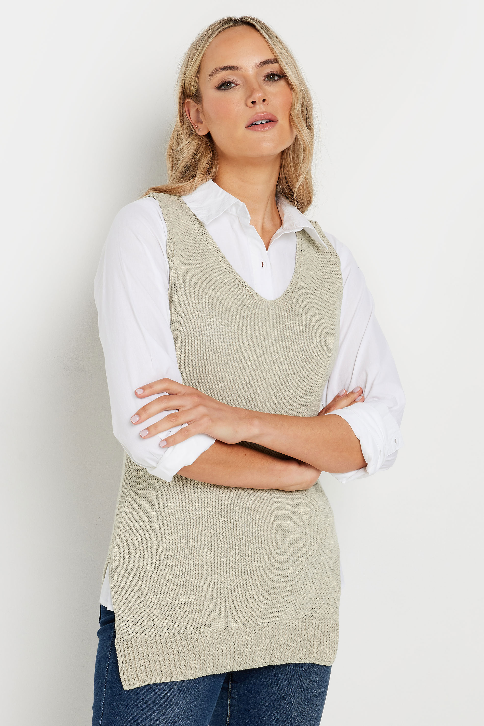 Get ready for the colder seasons ahead. Made from a soft knitted fabric, this vest top features a v-neckline and a sleeveless look. Style with jeans and trainers for a casual and comfortable look.