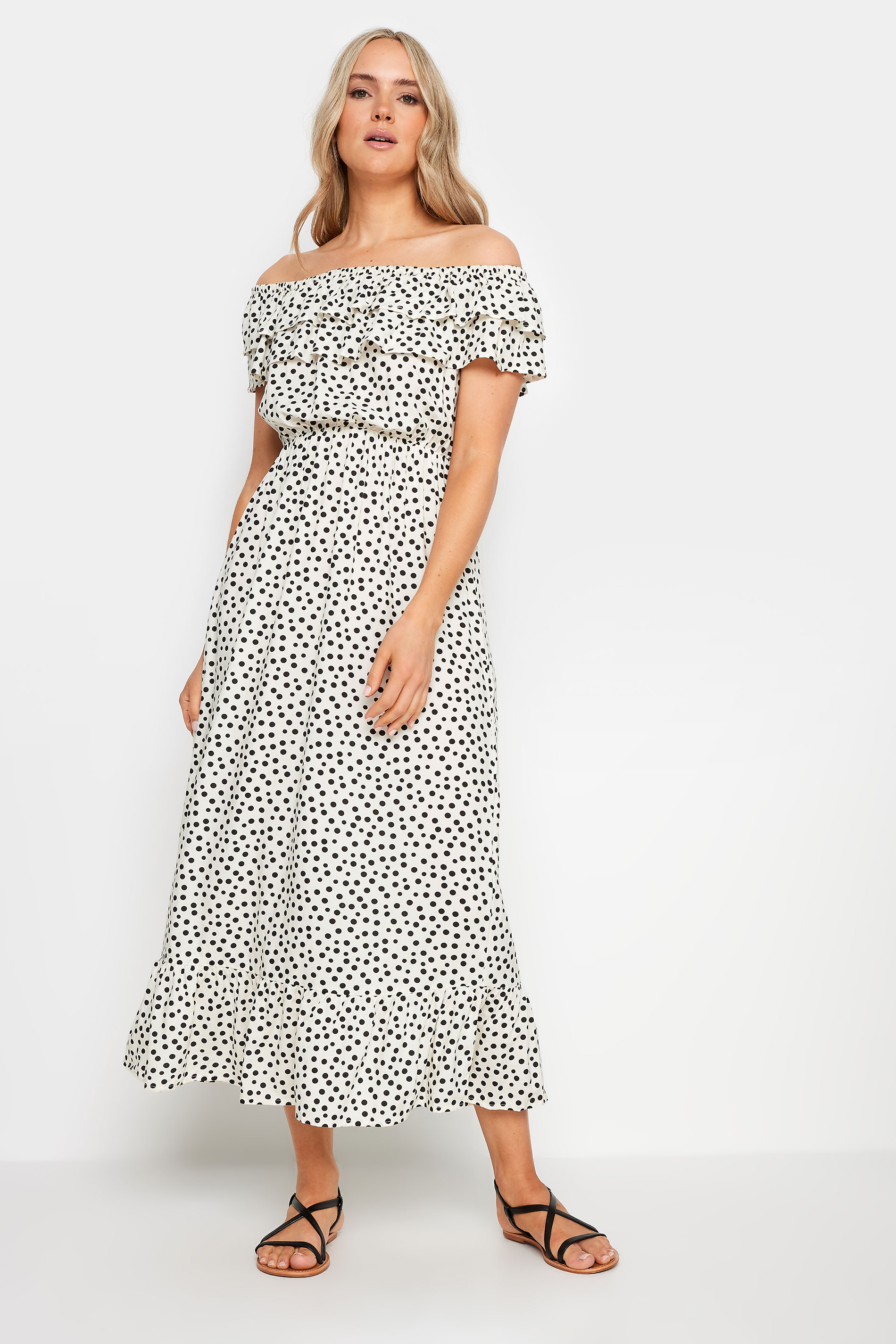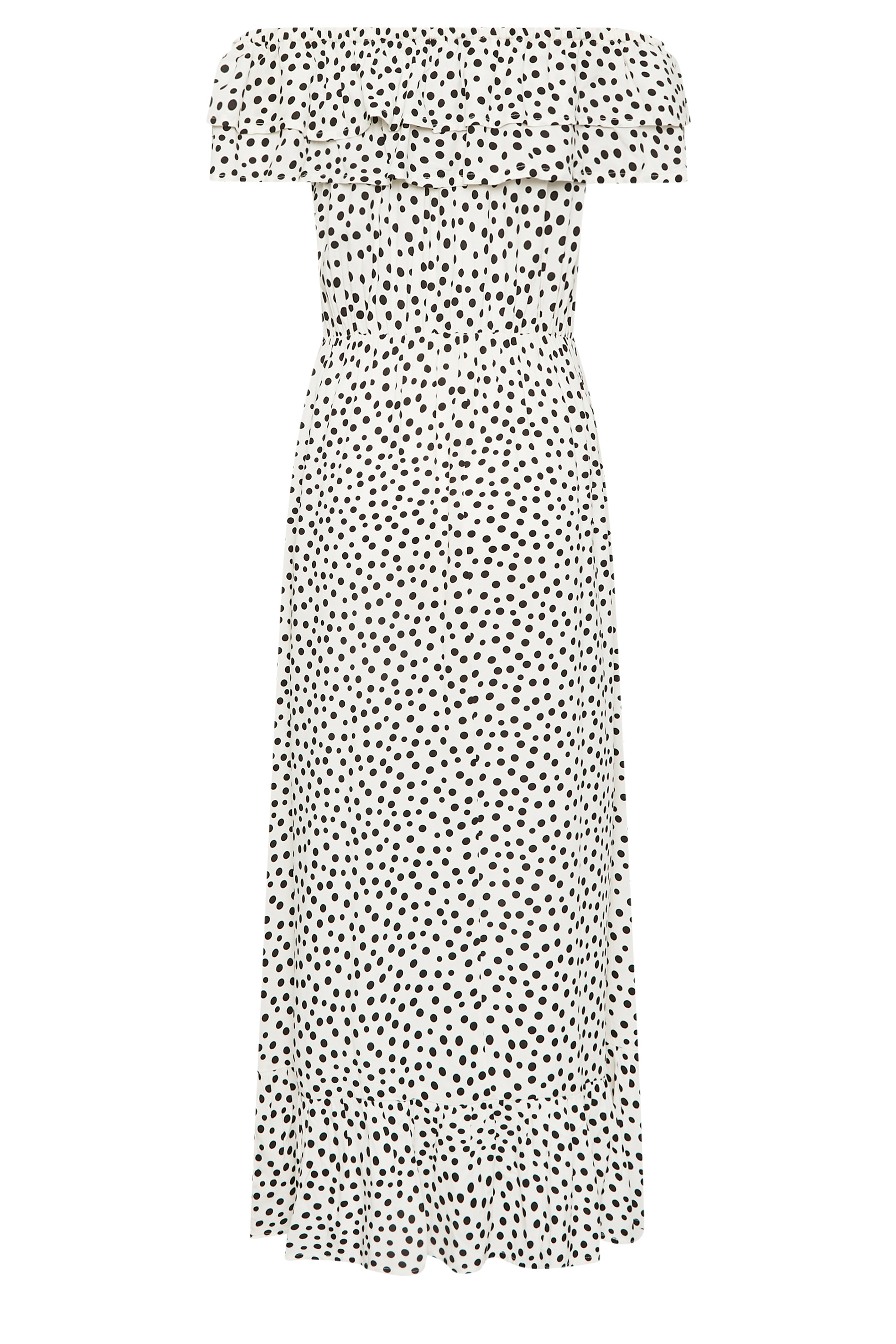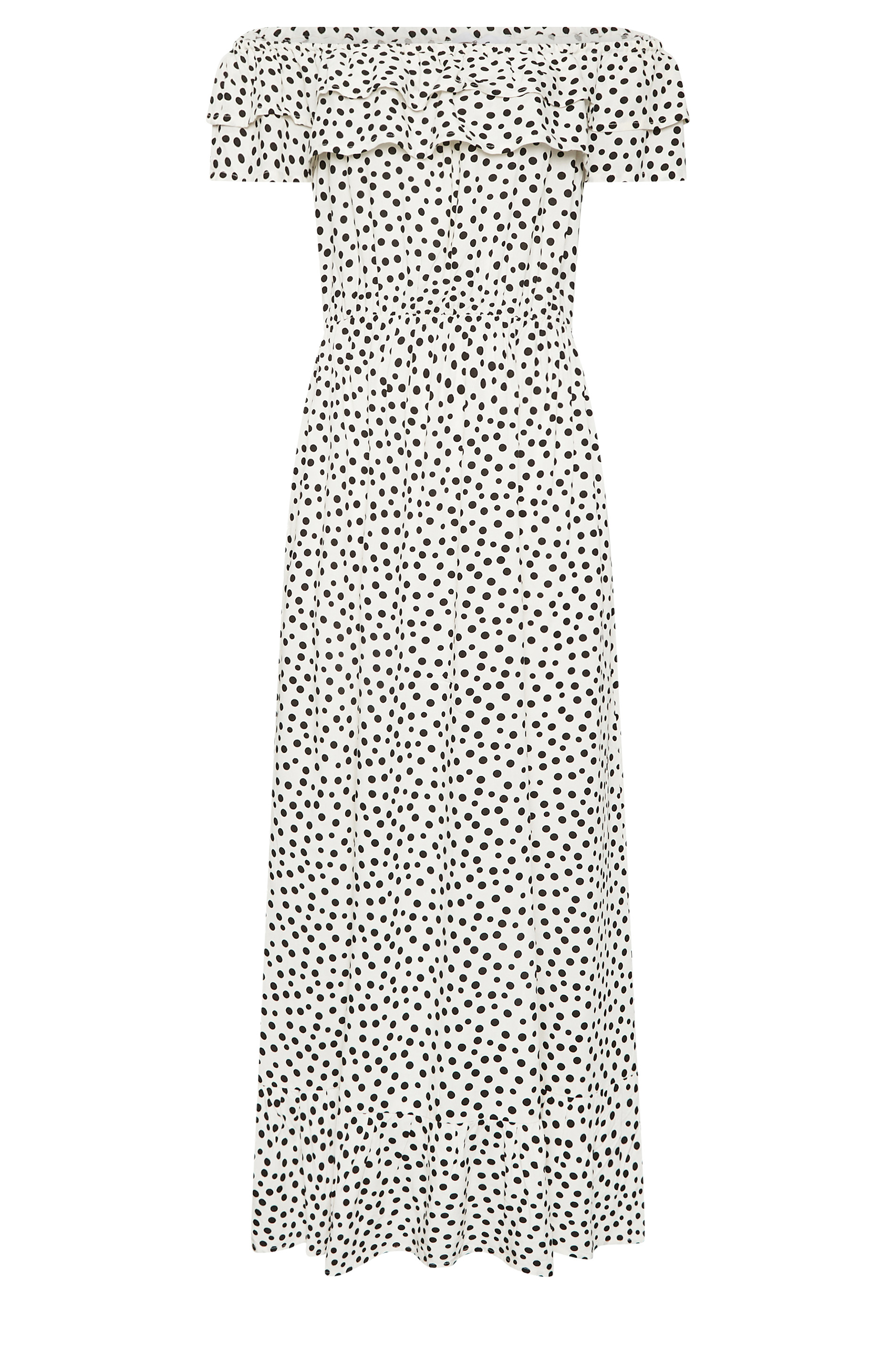Step into summer wearing this new-in bardot dress. Made from a comfortable woven fabric, it features a polka dot print with short sleeves and frill detail, complete at a midaxi length. Style with sandals and sunglasses to finish the look.