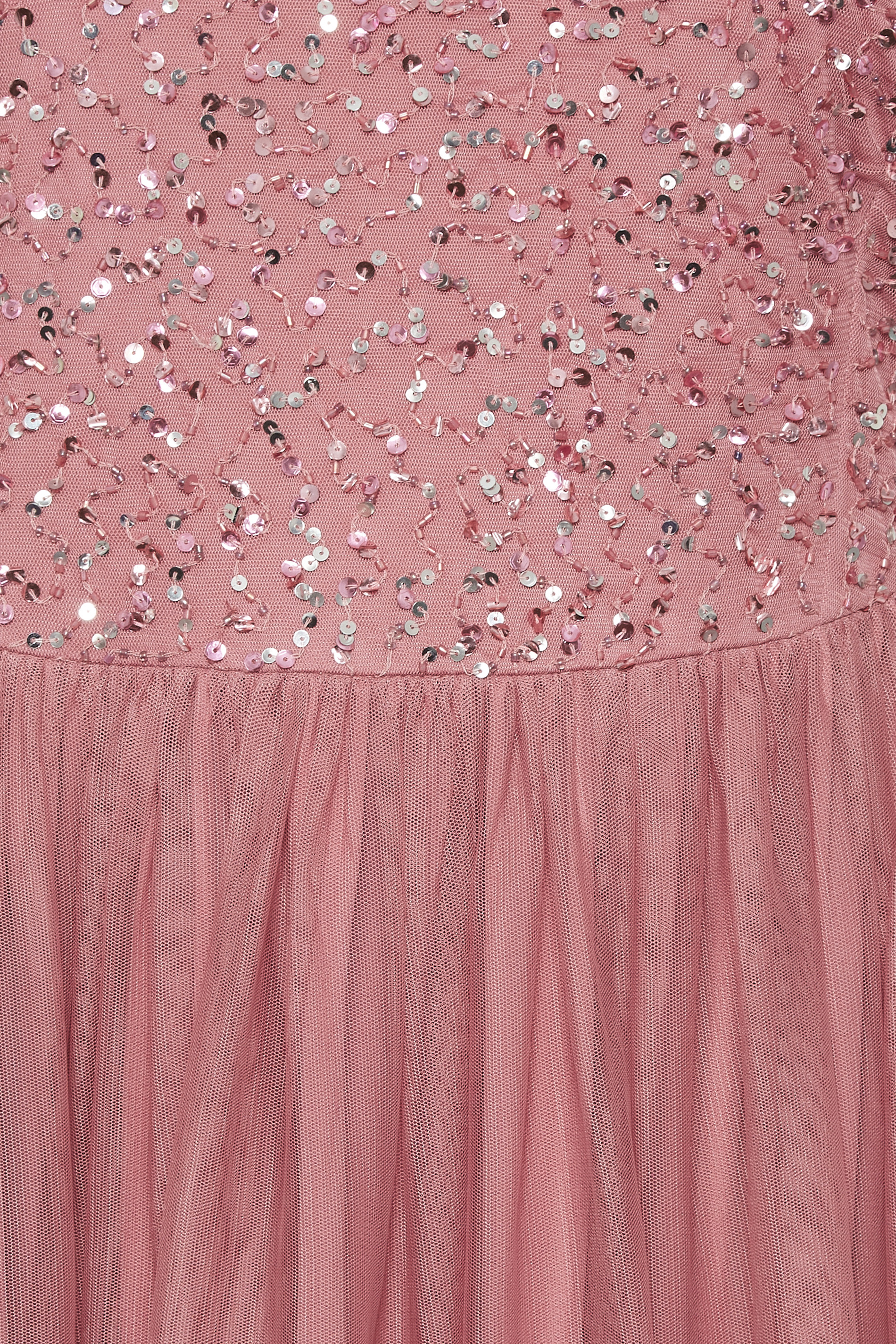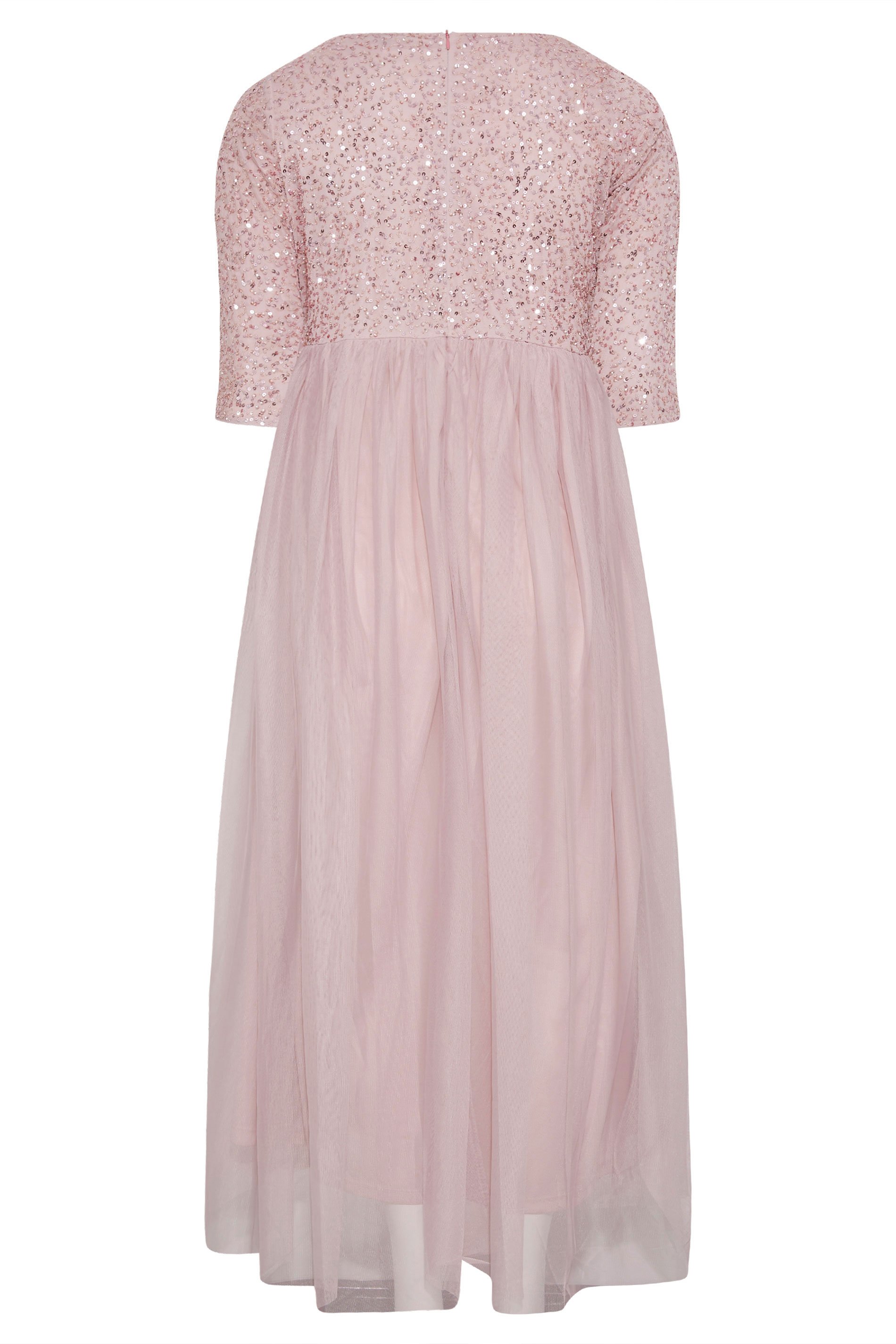 • LUXE Curve Pink Sequin Hand Embellished Maxi Dress