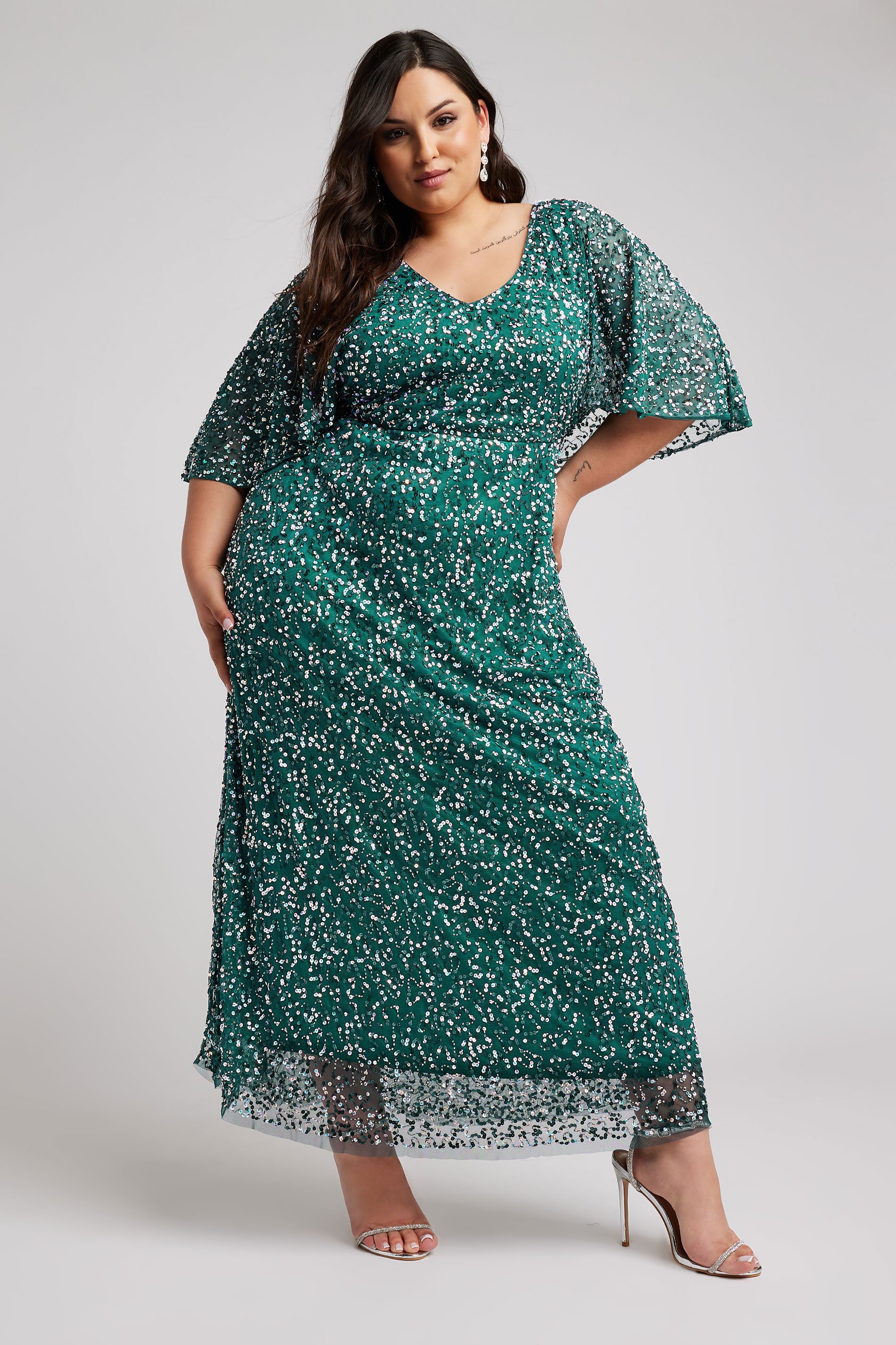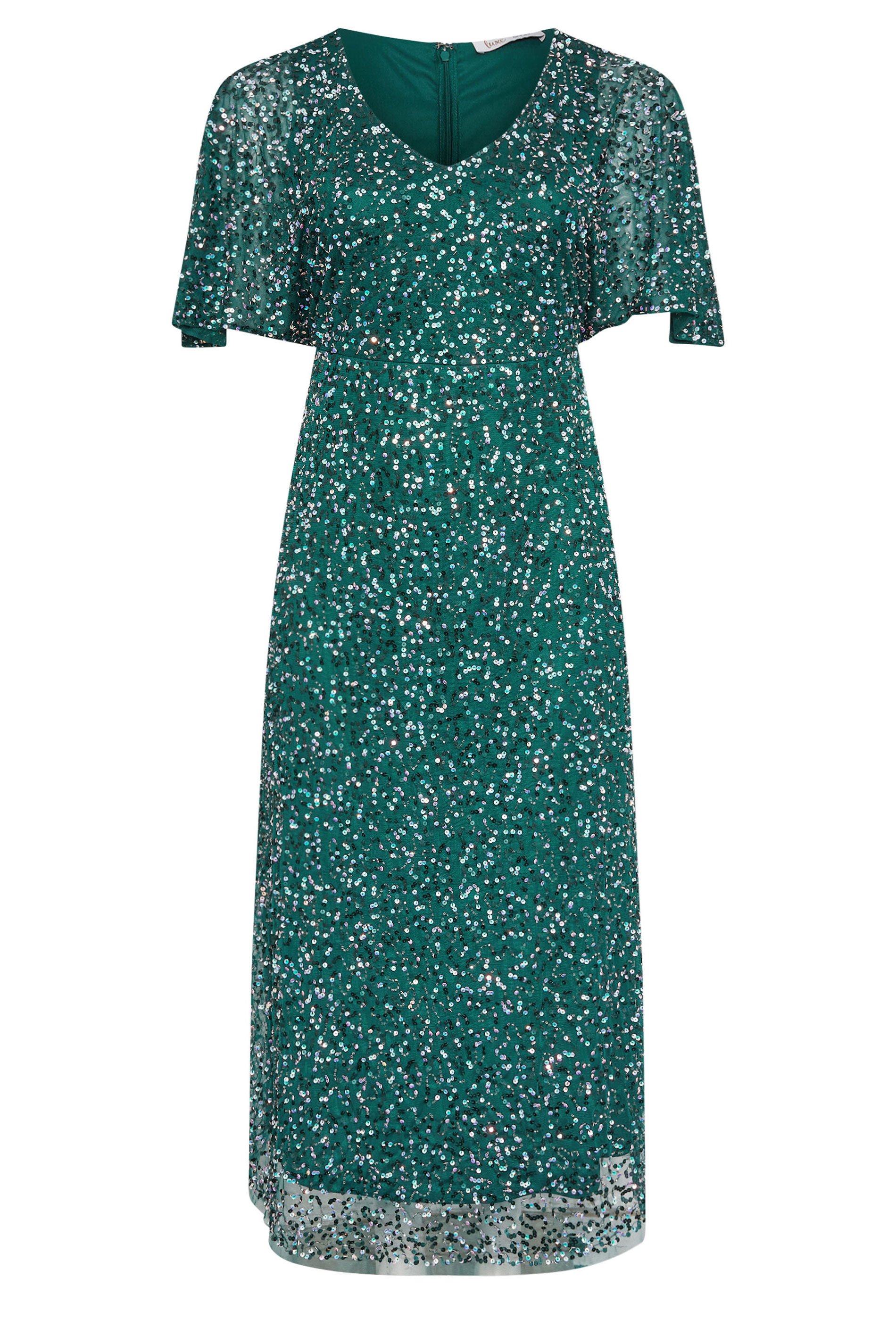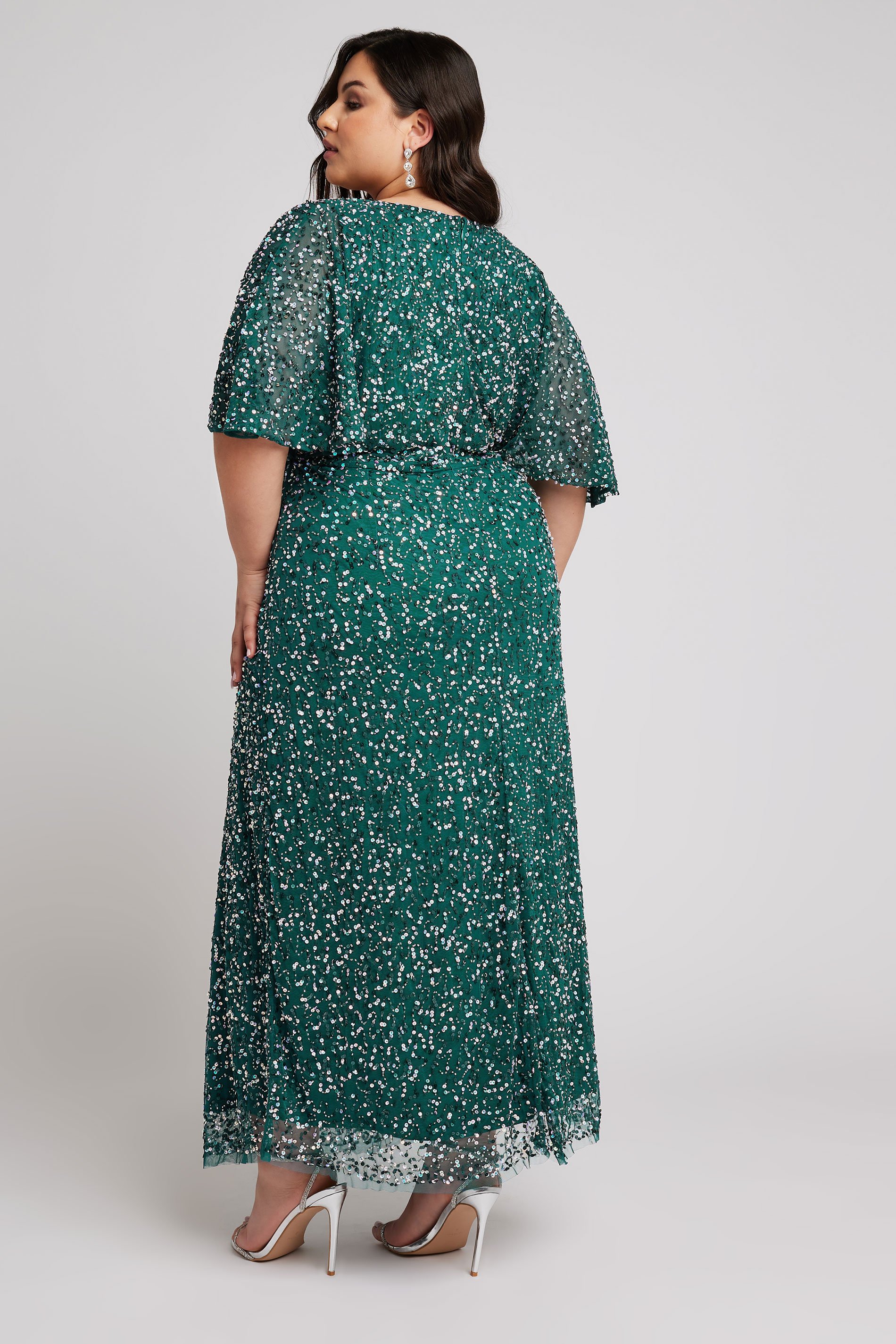 Feel your most luxurious in this eye-catching dress, exclusive to Luxe. Hand embellished, this dress features a v-neckline with short angel sleeves, complete at a maxi length. Style with heels and a clutch bag for a glamorous look that you can wear with confidence.