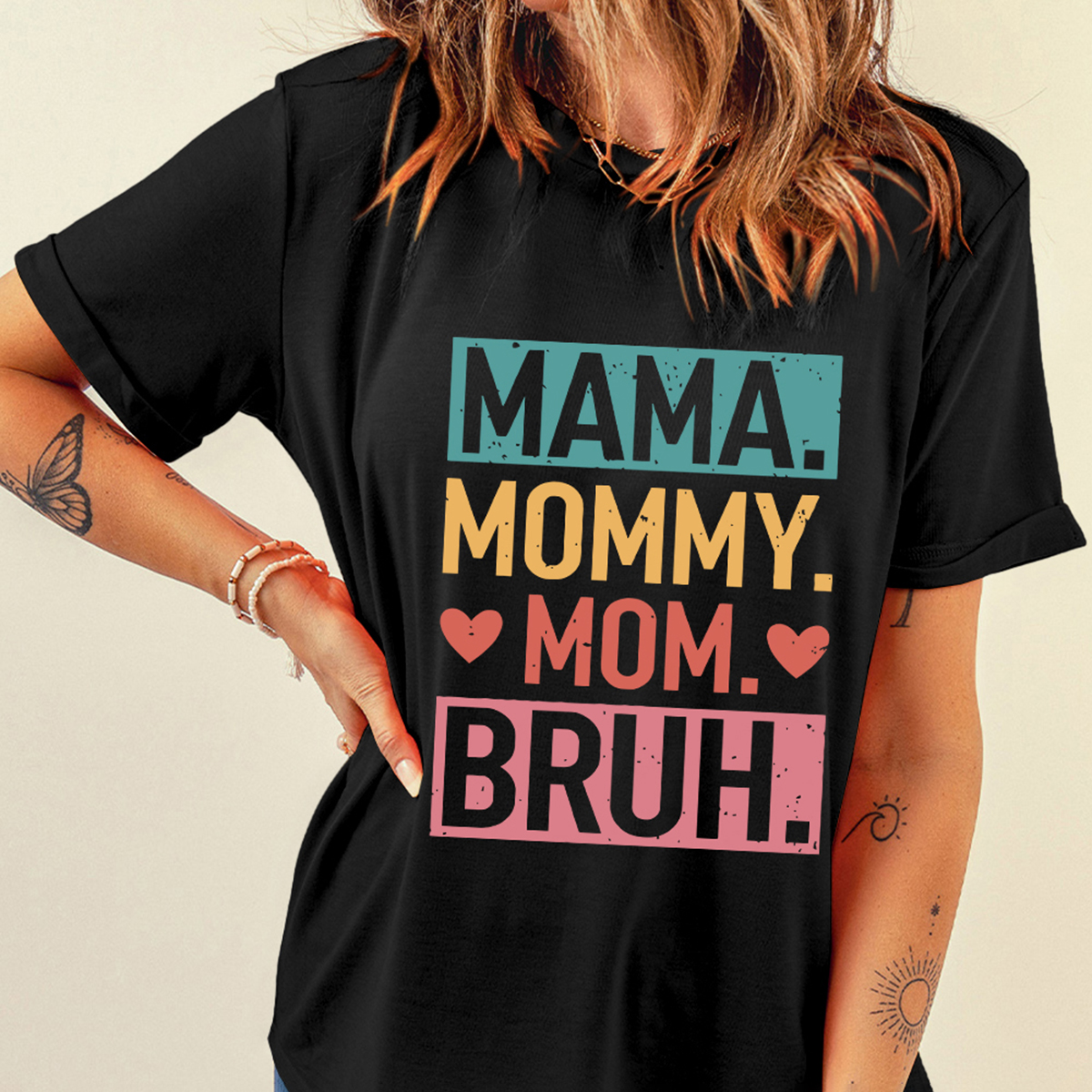 Mama Mommy Mom Bruh Print Round Neck Short Sleeve T-Shirt