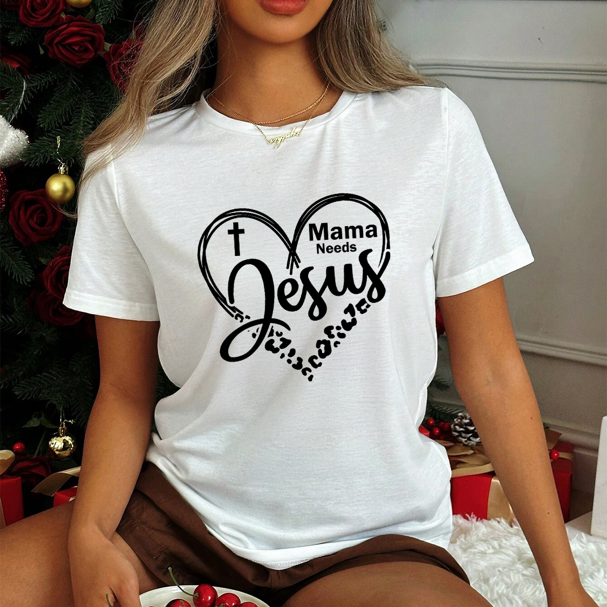 Mama Needs Jesus Printed Round Neck Short Sleeve T-Shirt 9519228