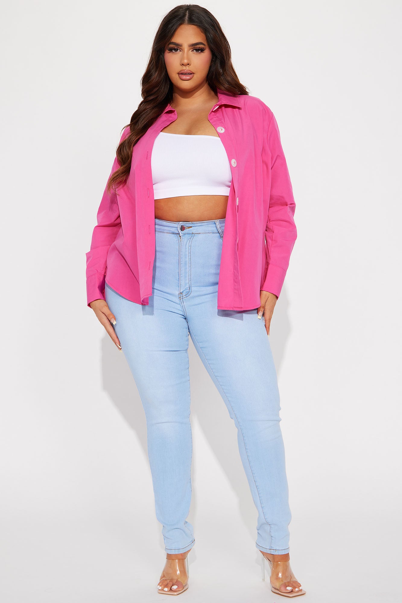 Manifesting Needs Poplin Shirt - Fuchsia