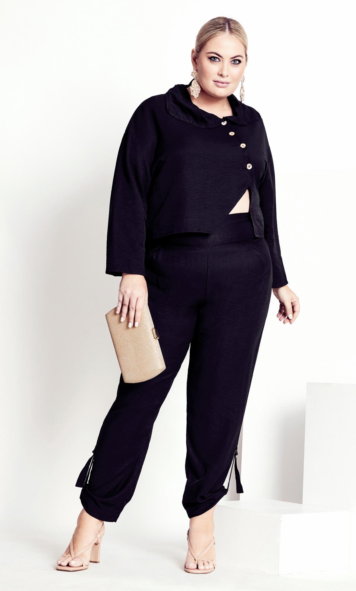 Wear it with high-waisted jeans and heels for a day-to-night look.