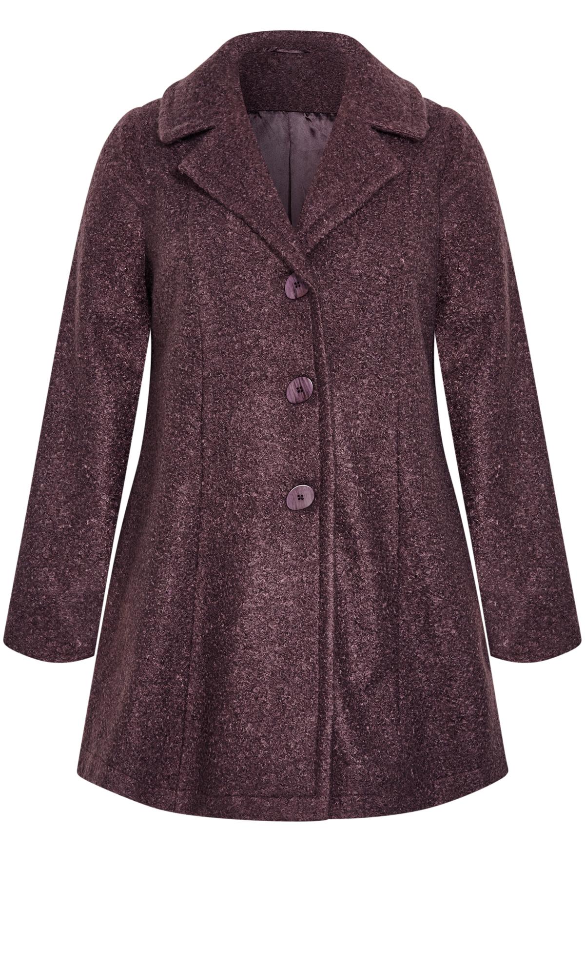 Bring a pop of colour into your outerwear wardrobe with our bold purple Boucle Coat. With its textured fabrication, triple front buttoned closure, and practical side pockets, this coat is what you'll be reaching for any day of the week.