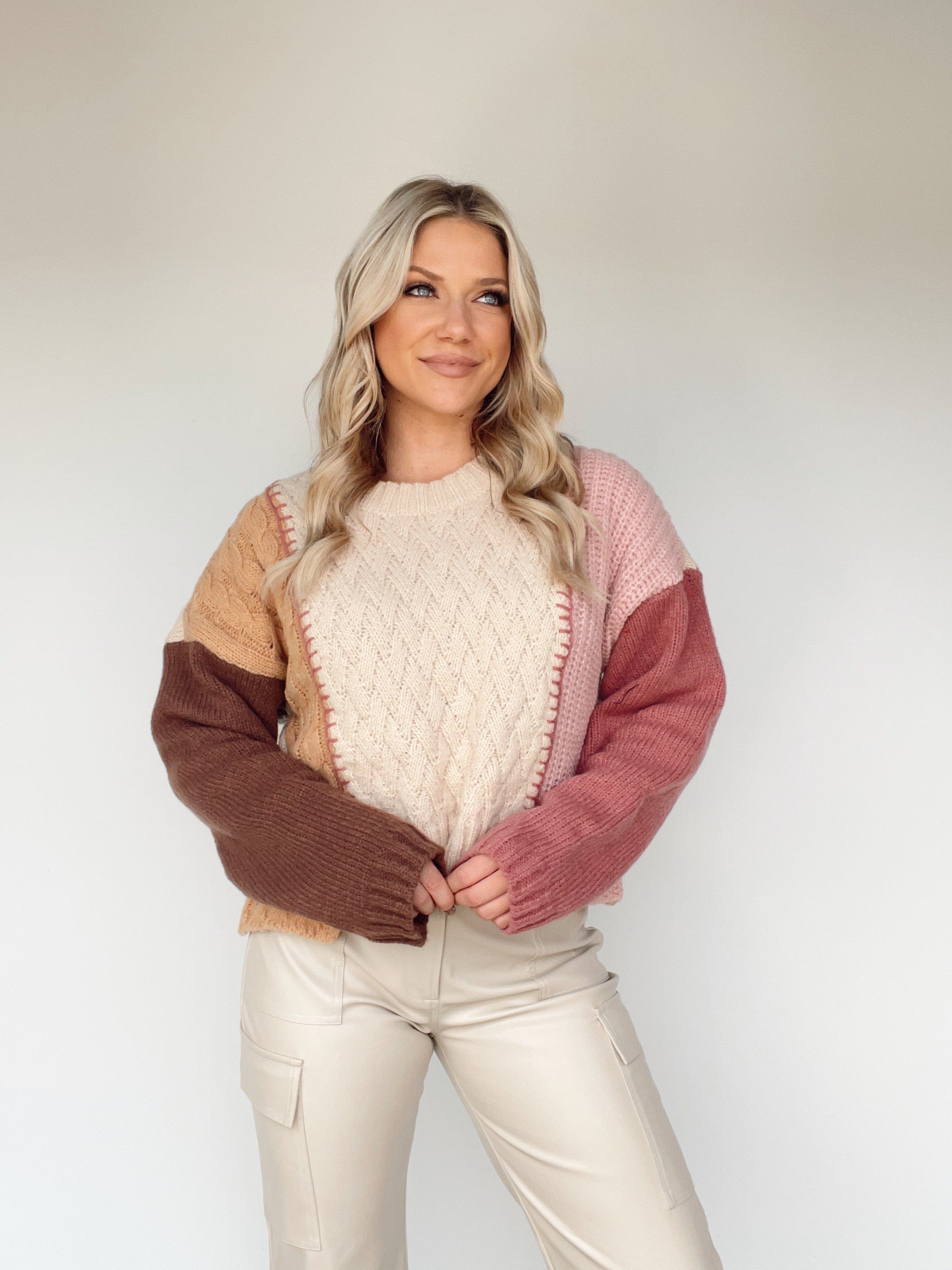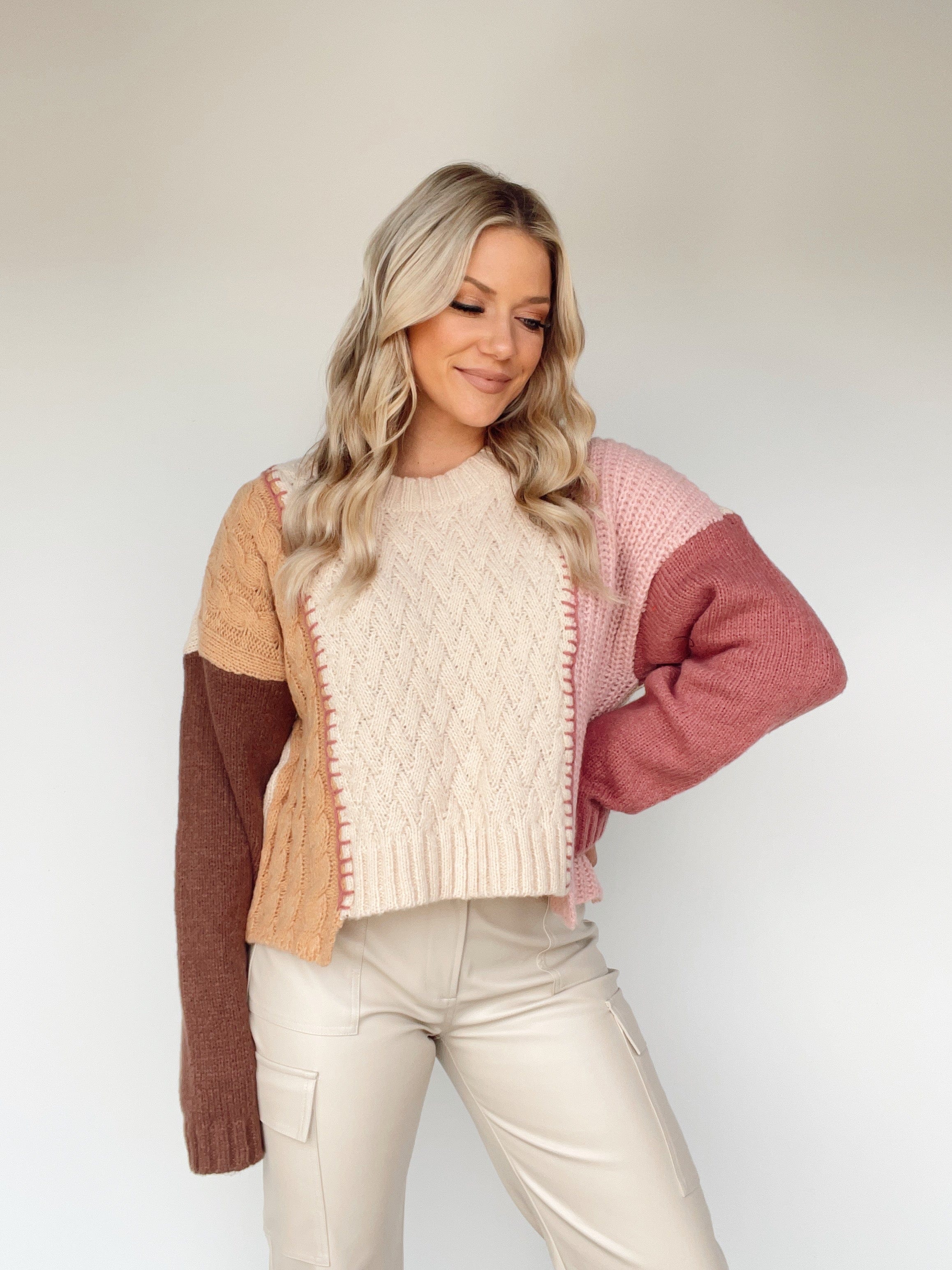 Complement any look while stylishly staying warm with the Maple Grove Sweater. Crafted with multi-textured patchwork and color block panels, this unique neutral cropped knit offers a sophisticated and elevated look with its sweet stretchy softness. Perfect for the office, dinner, or a brunch with friends, the Maple Grove Sweater is sure to become a versatile and trendy favorite.