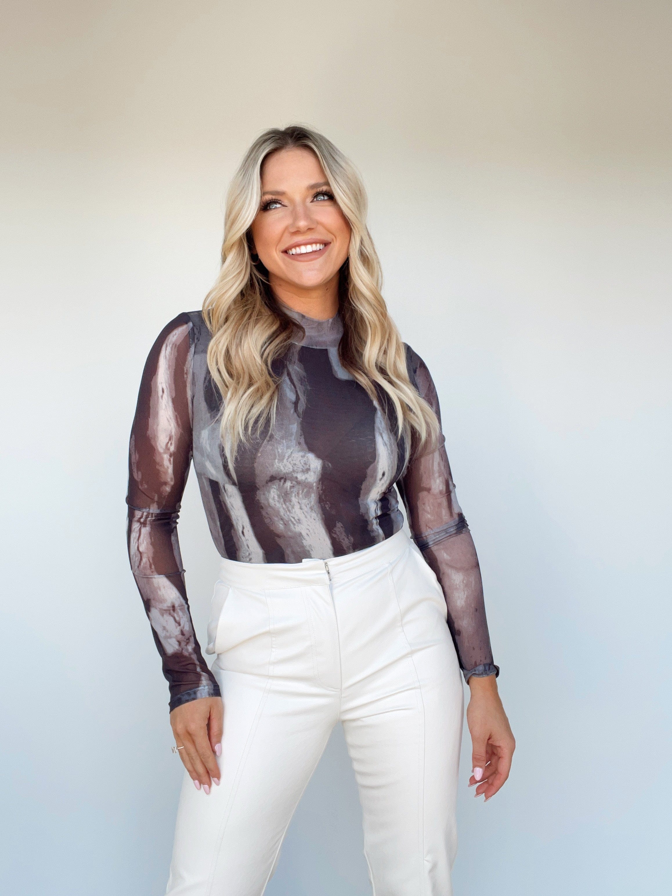 This top-of-the-line Marble Mesh Bodysuit is the perfect blend of comfort and statement-making style. Its elegant, exclusive design features a marble mesh overlay and soft inner lining, providing comfort, stretch, and a soft touch all night long. With snap closures, a tong fit and a trendy, edgy look, this piece is ideal for a night out - dinner, drinks, and a chance to show off your sense of fashion and style.