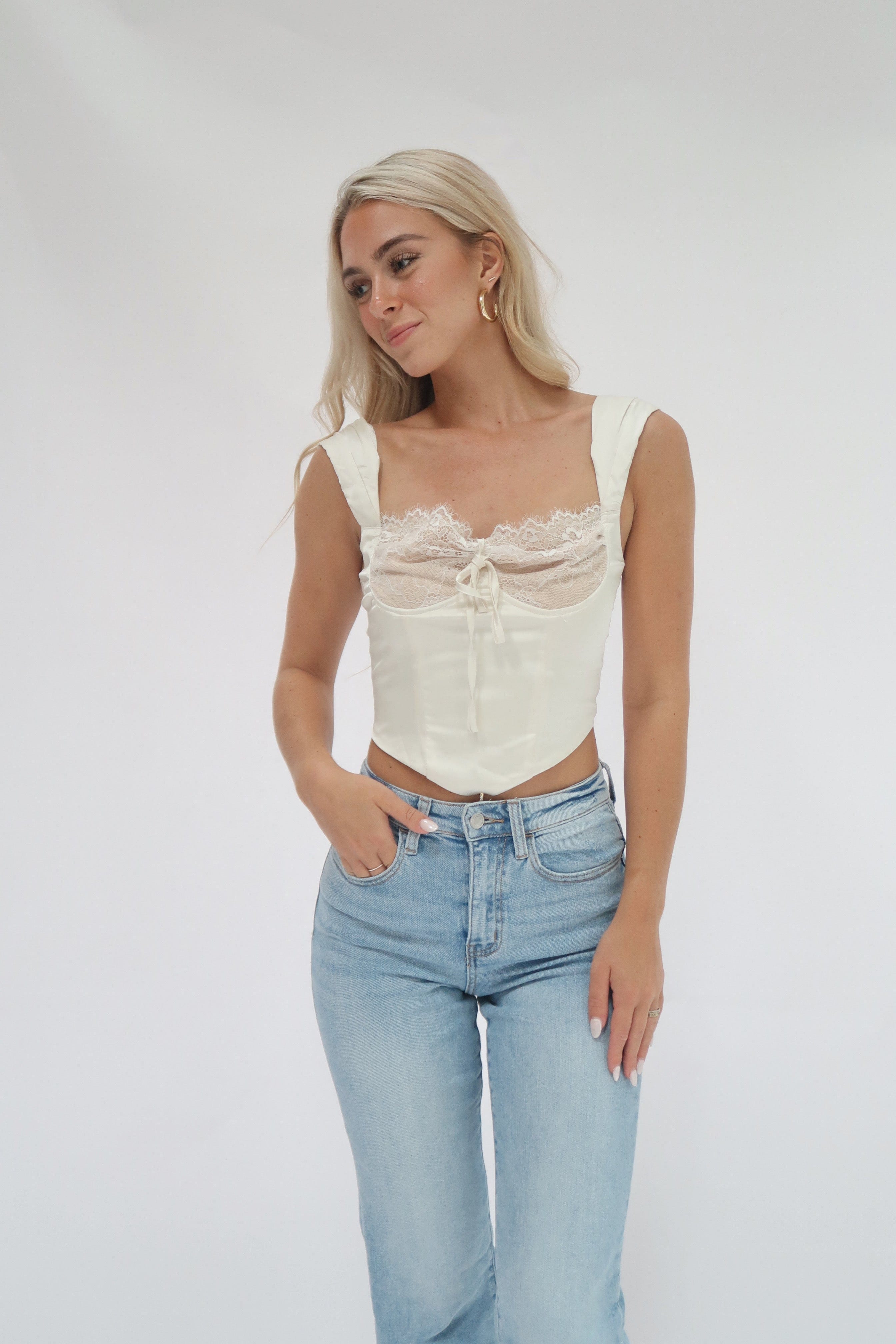 Unleash your flirty side with our Marissa Lace Tank Featuring delicate lace and a corset design, this top is both playful and stylish. The zipper closure in the back adds a touch of edge to complete the look. Perfect for a night out or a daytime adventure.