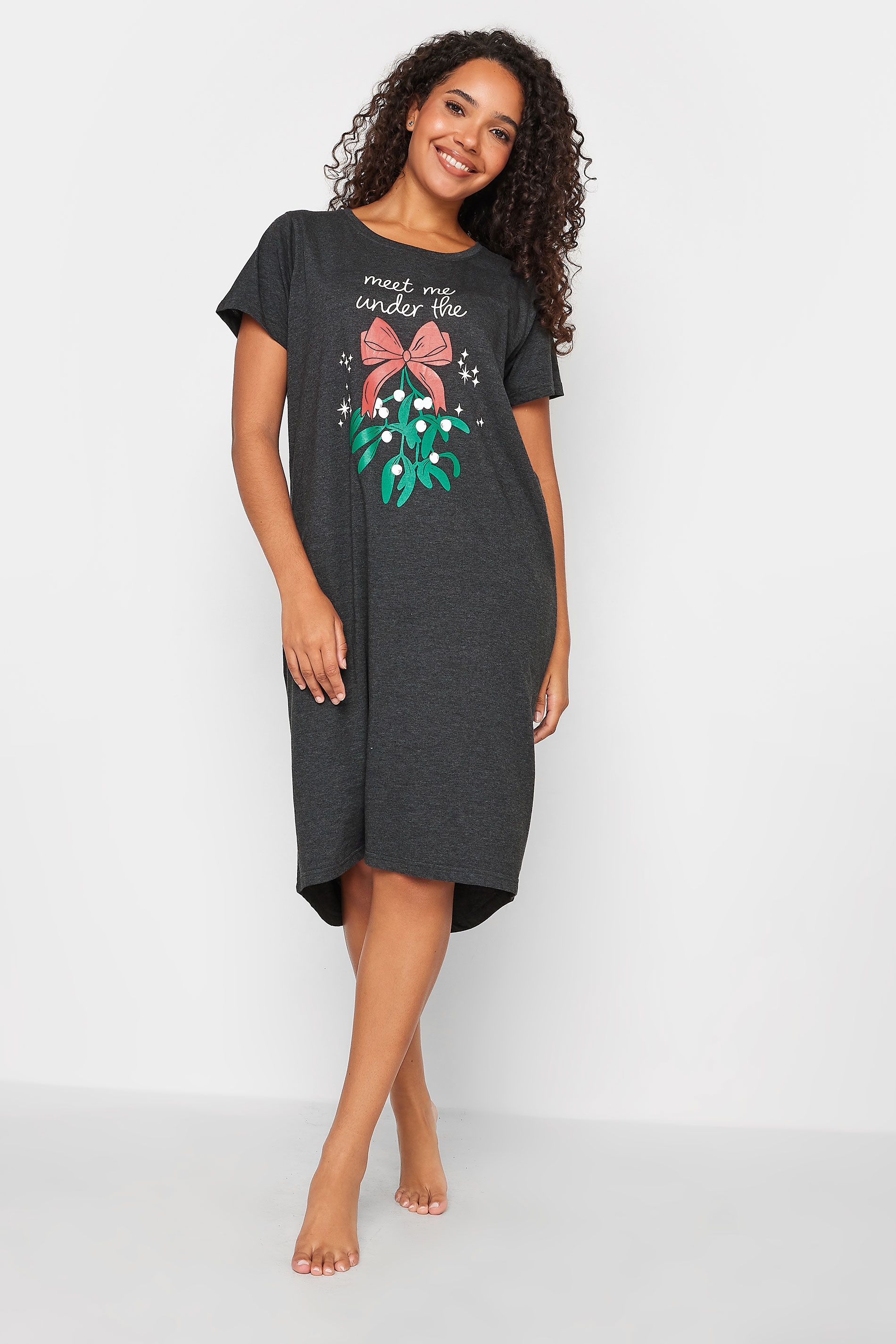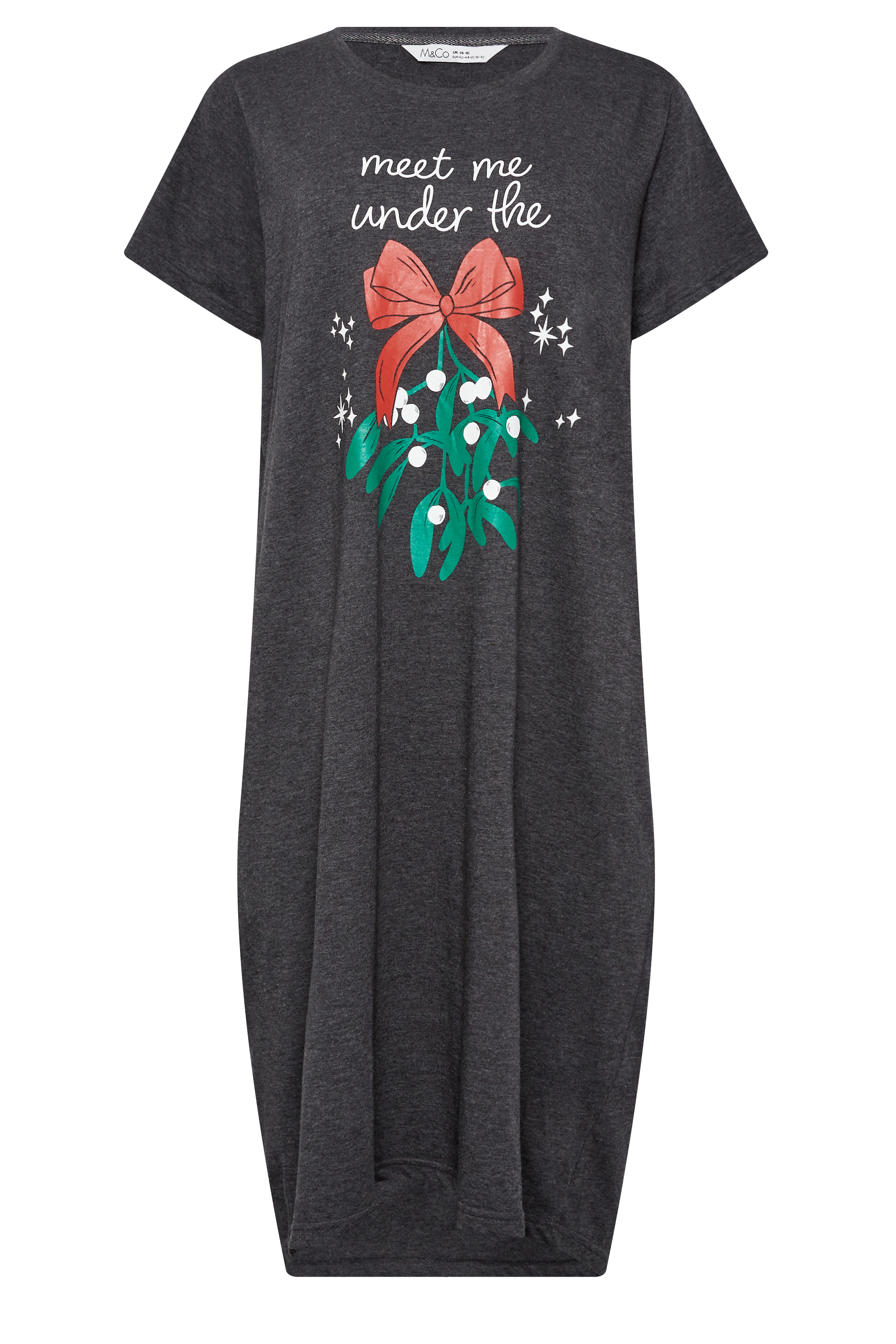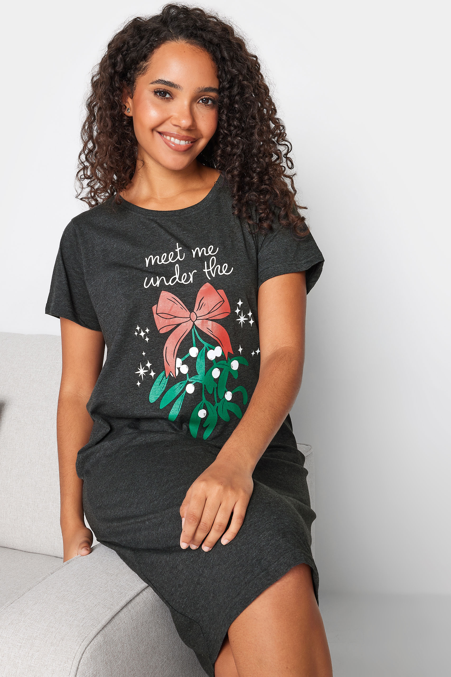 Sleep in style with this new-in Christmas themed nightdress. Made from cotton blend fabric, it features a dipped back hem, 'Meet me' slogan, and a mistletoe print design. Wear with slippers for the ultimate cosy night-in look.