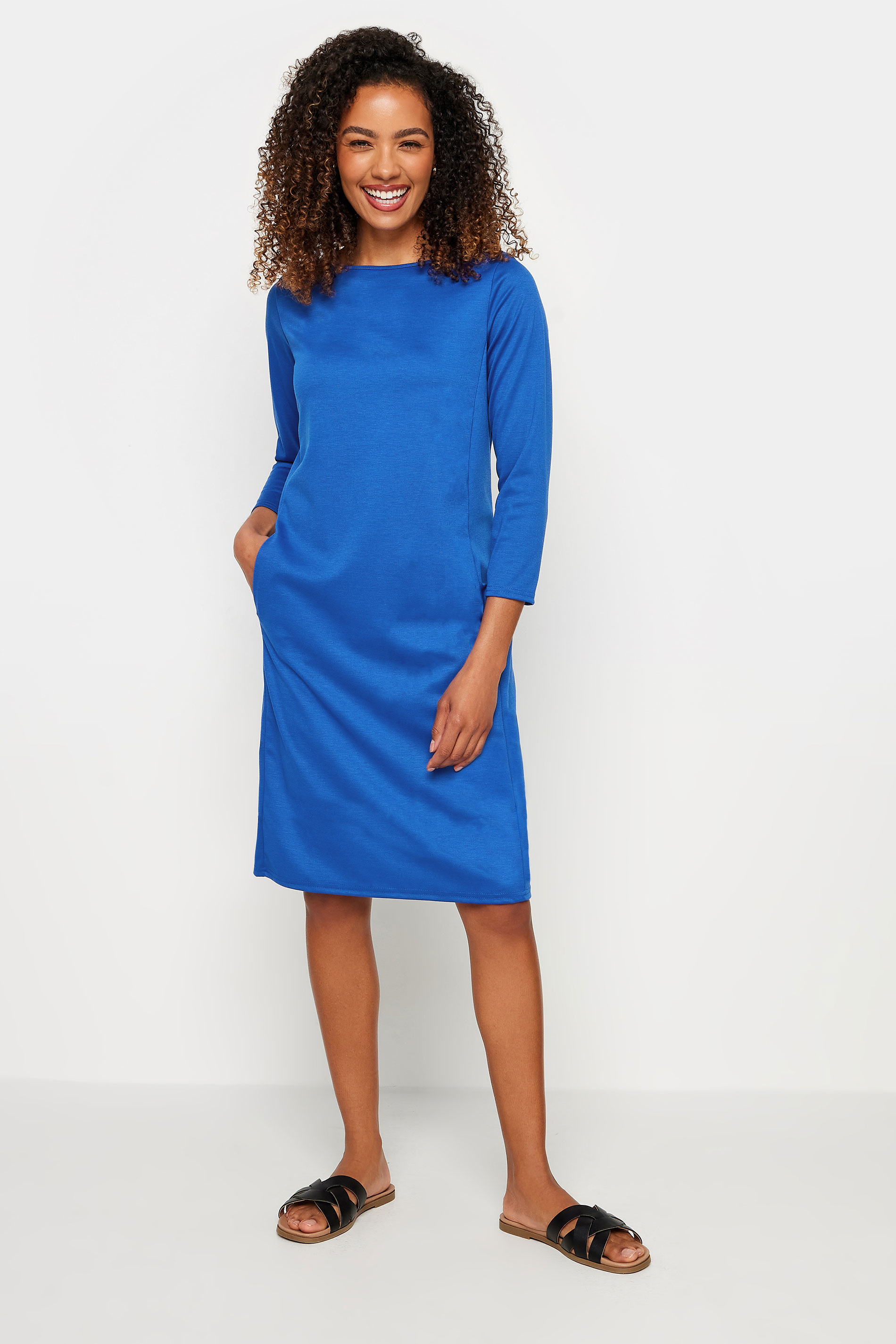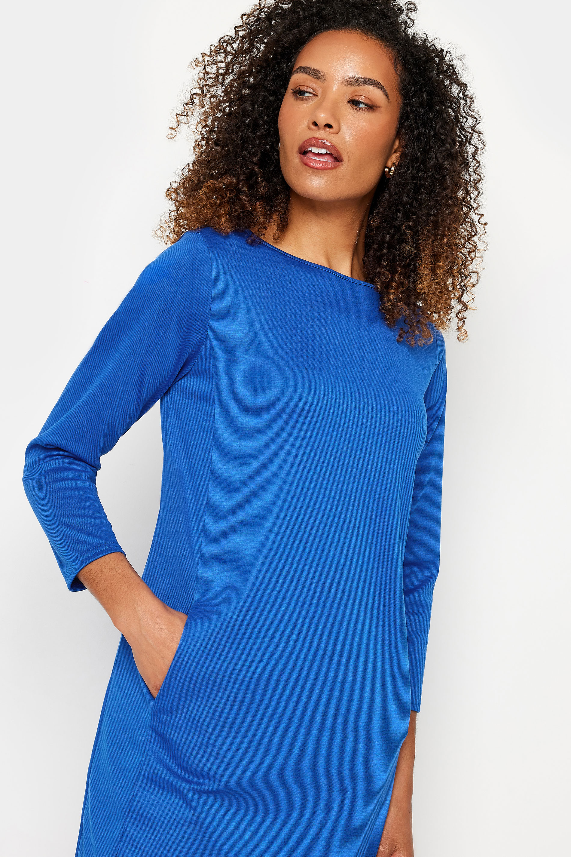 This pocket swing dress is a new-season work wear essential. With a stylish envelope neckline, it's practical with two side pockets and finishes at a knee length in a swing style silhouette. Pair with heels for a simple yet stylish look you can wear any day of the week.