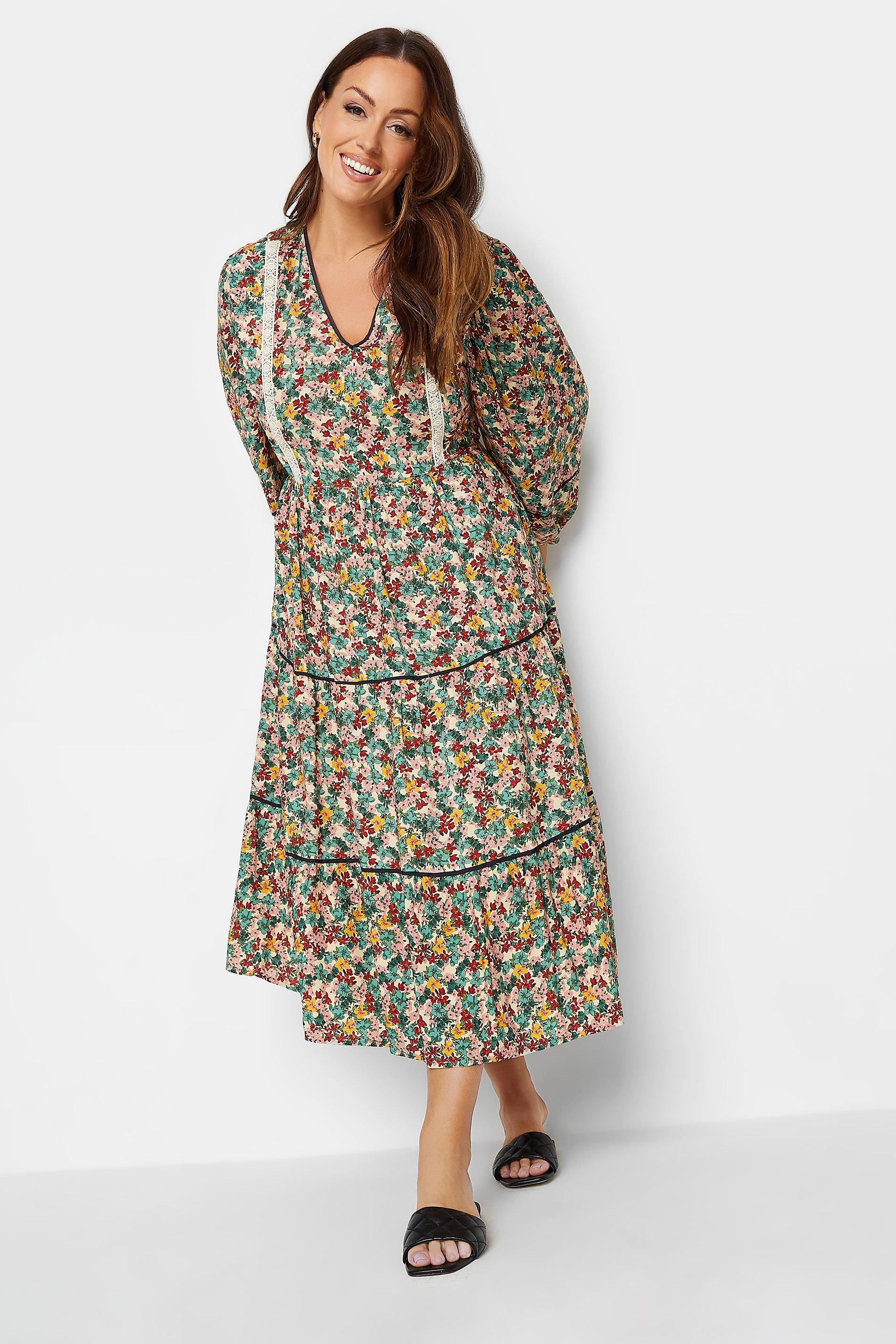 Enjoy the summer in style wearing this new-in maxi dress. Made from a comfortable woven fabric, it features a v-neckline with long sleeves in a tiered maxi style, complete in a floral print with crochet detail. Pair with sandals or heels to suit your occasion.