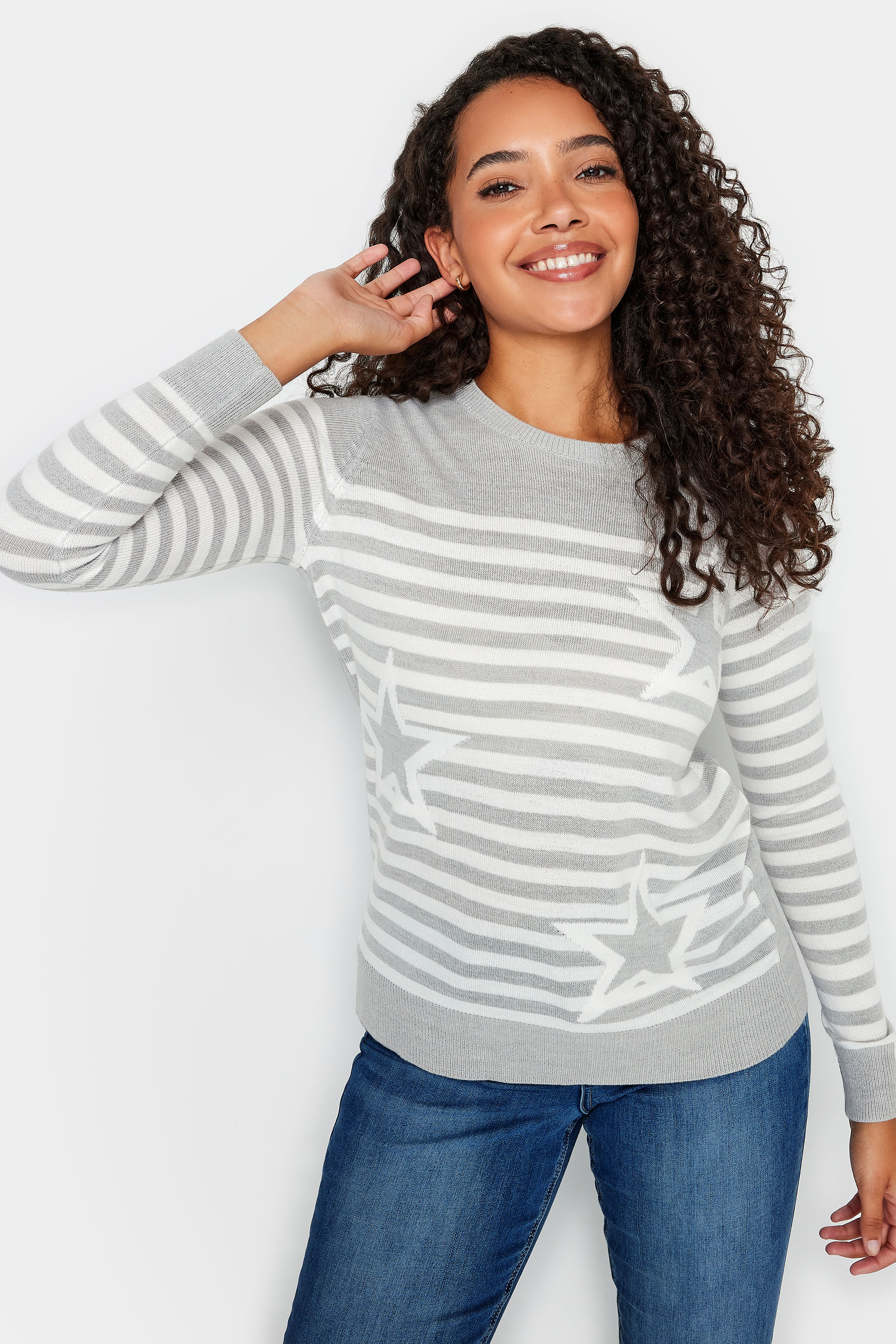 In need of a wardrobe refresh? Look no further than this new-in jumper. Made from a comfortable jersey fabric, it features a stripe and star print, long sleeves and a crew neckline. Complete the look with jeans and trainers for easy, everyday style.