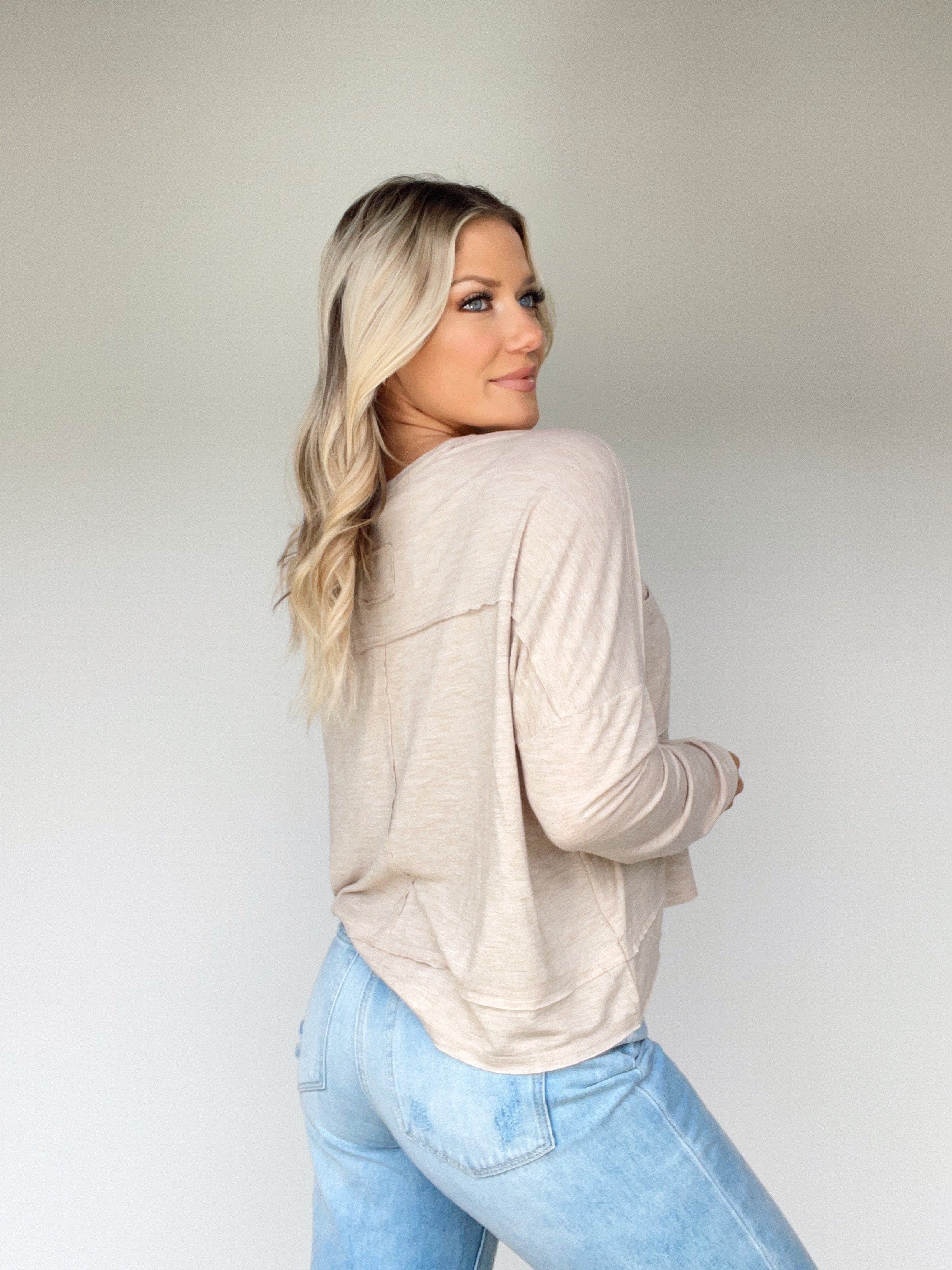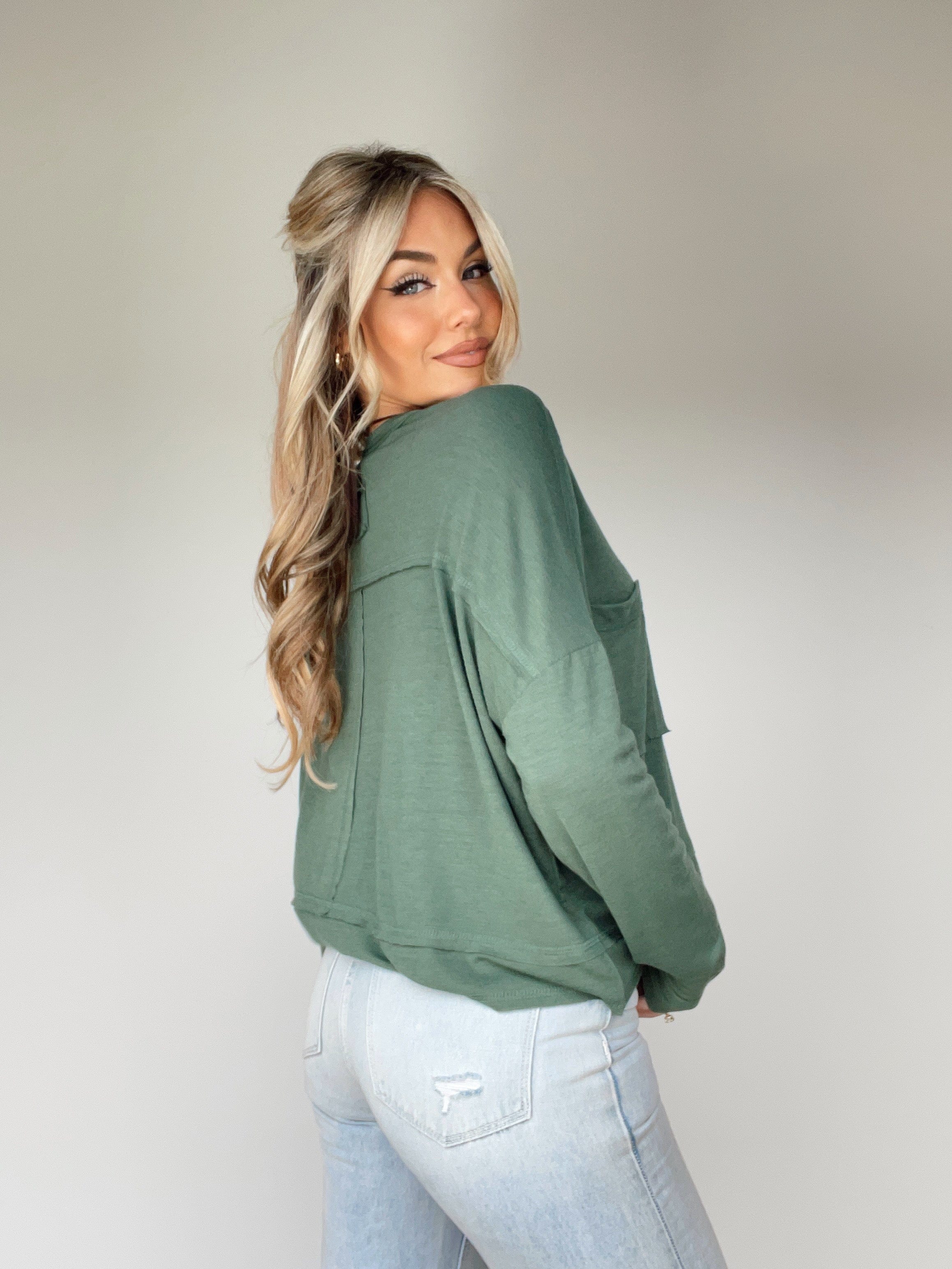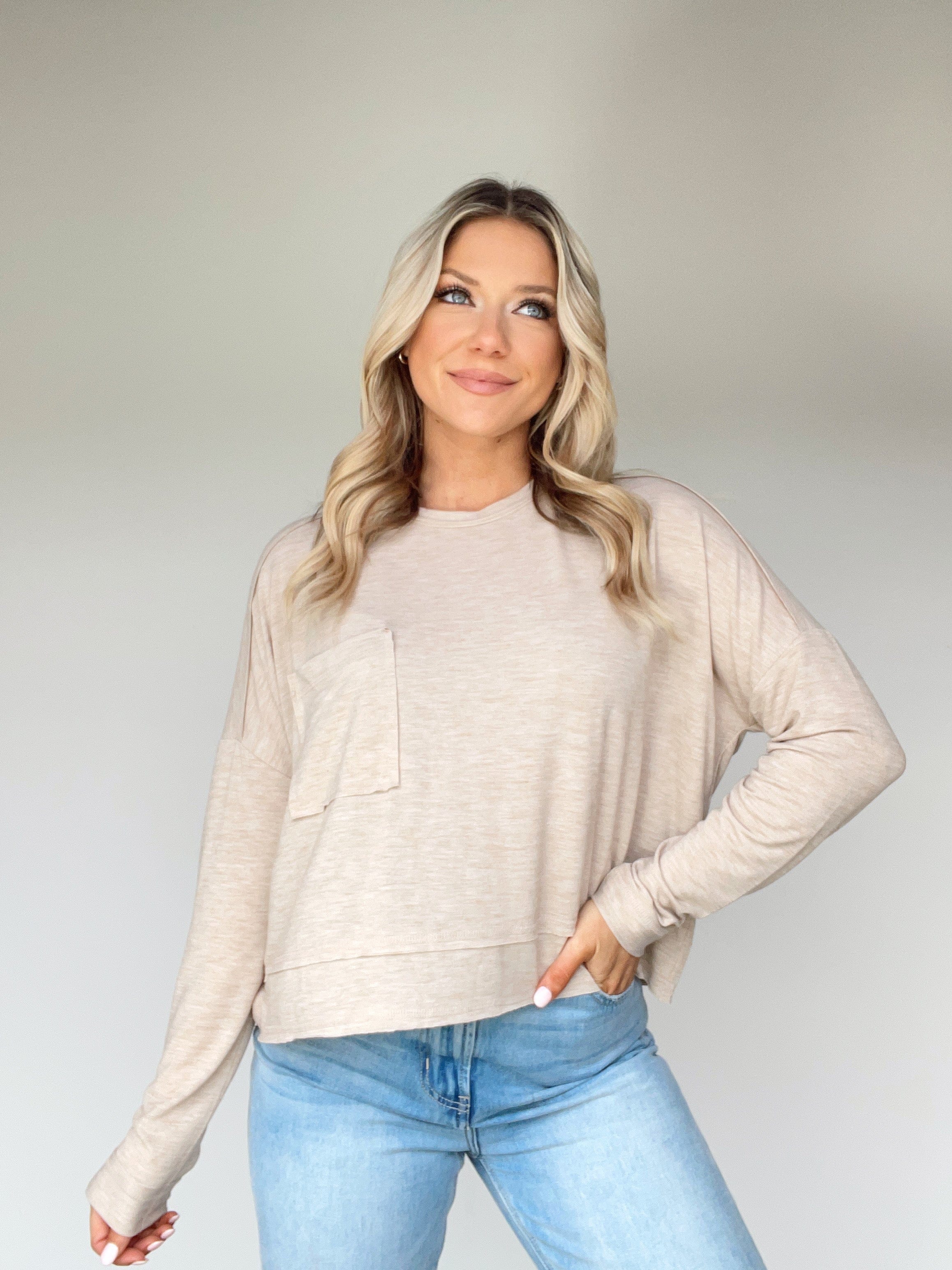 Feel comfortable yet stylish with the Mellow Mood Top. Featuring a rounded neckline, pocket detail, and relaxed fit, this crop top is essential for lounging, layering and brunch shopping. Crafted with the utmost comfort and luxury, the soft and stretchy fabric pairs well with any ensemble, making it a winter wardrobe staple. Enjoy versatile and effortless comfort and style with the Mellow Mood Top.