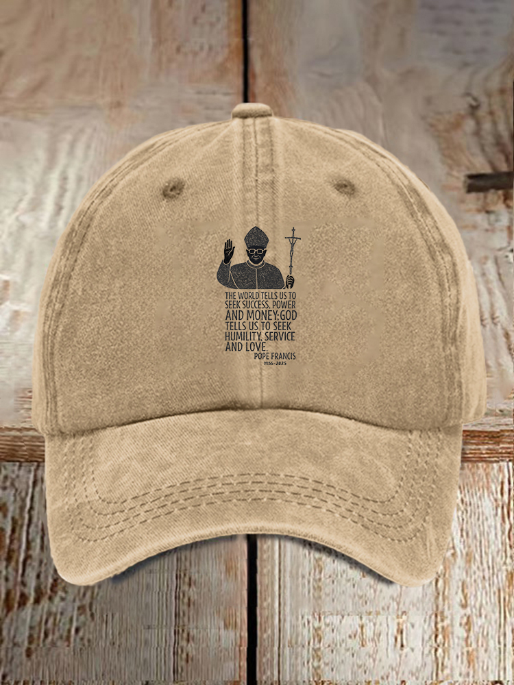 Men And Women'S The World Tells Us To Seek Success, Power And Money: God Tells Us To Seek Humility, Service And Love Baseball Cap