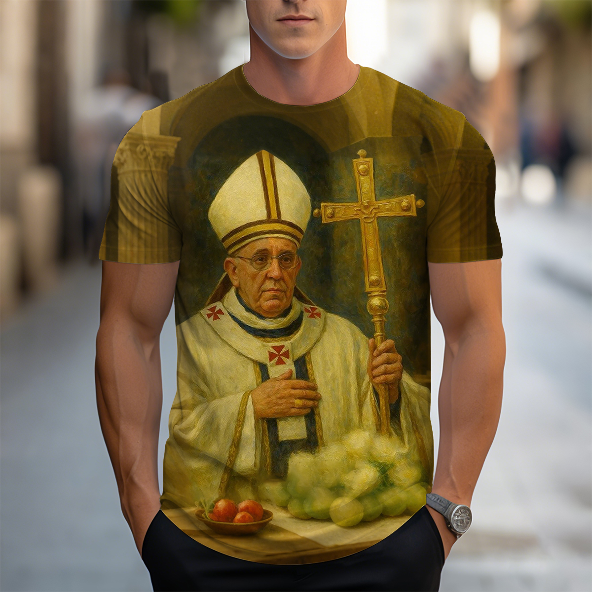 Men's 2025 Pray For Holy Father Print Short Sleeve Round Neck Cotton T-Shirt 9537486