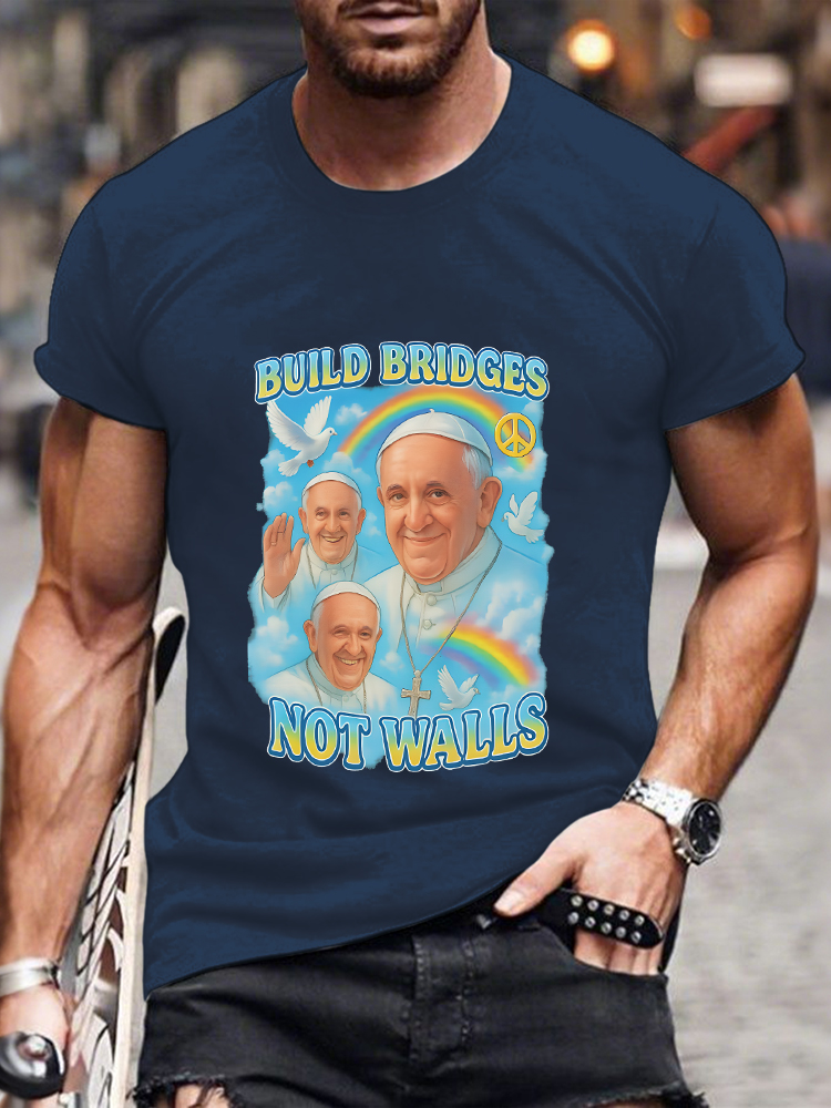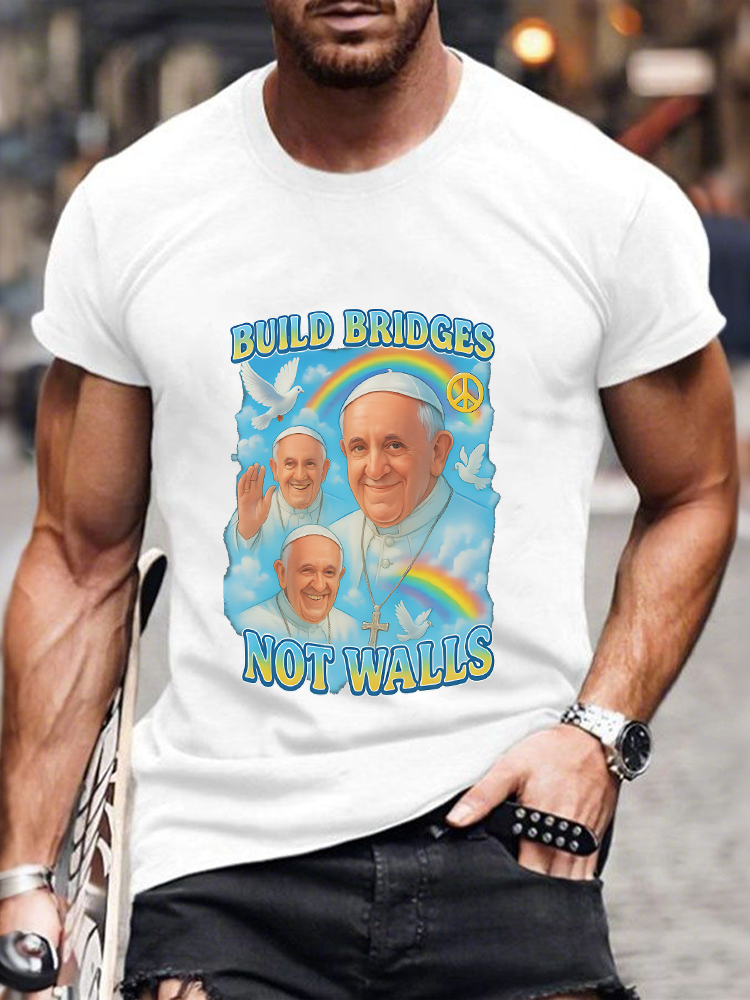 Men's Build Bridges Not Walls Lgbt Peace Print Short Sleeve Round Neck Cotton T-Shirt