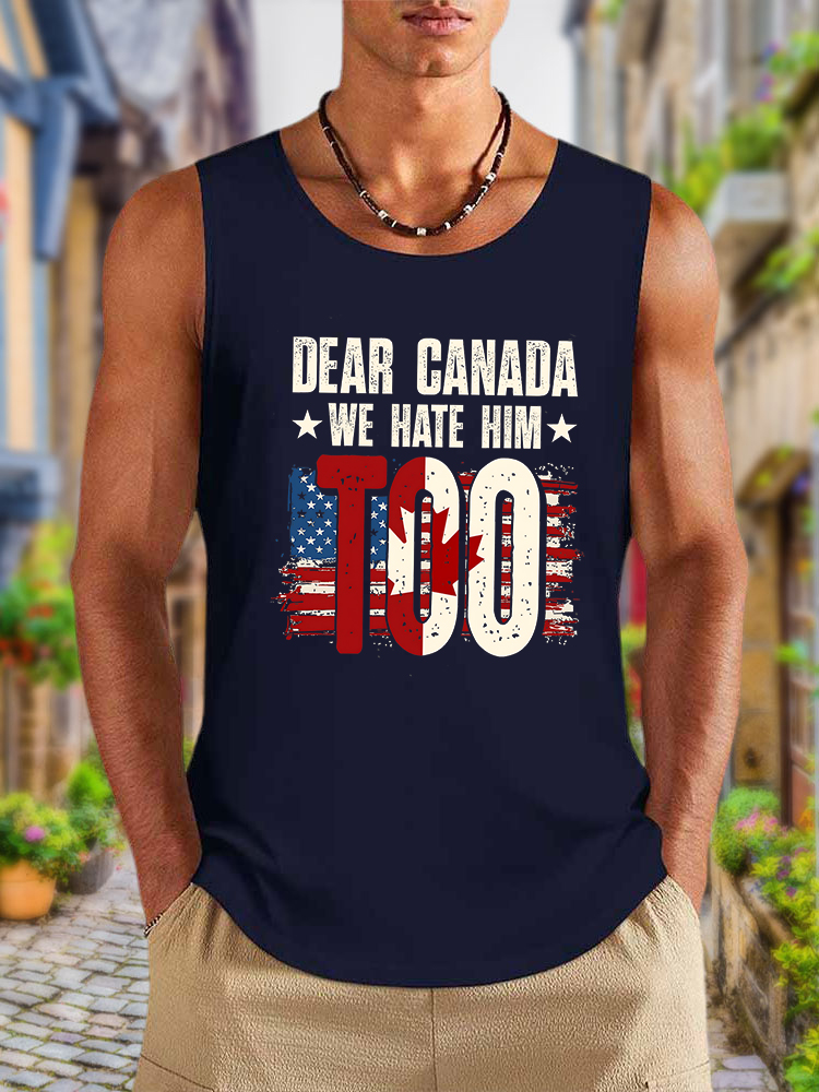 Men'S Dear Canada We Hate Him Too Round Neck Cotton Vest 9541806