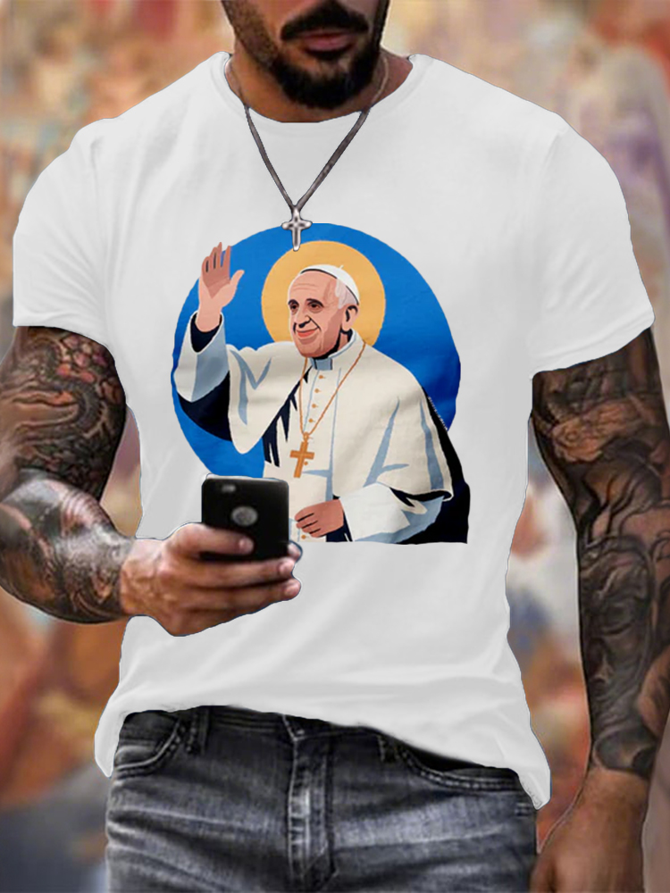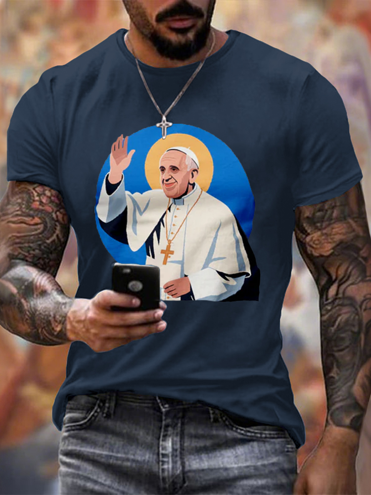 Men's I Love PF Print Short Sleeve Round Neck Cotton T-Shirt