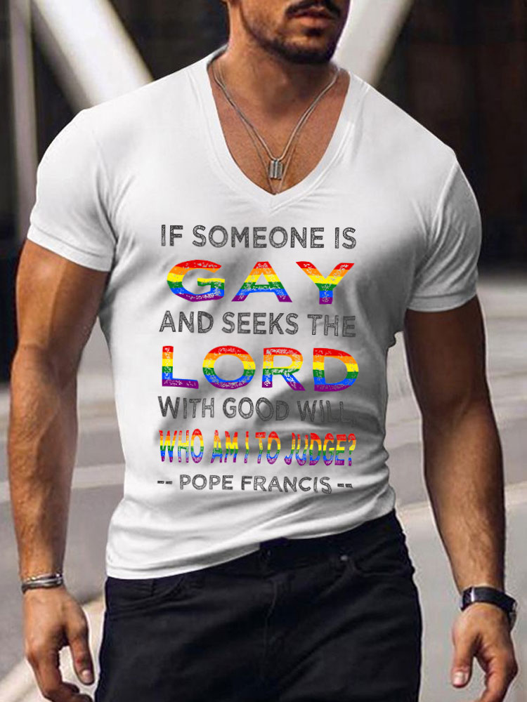 Men'S If Someon Is Gay And Seeks The Lord With Good Will Who Am I To Judge Pope Francis V-Neck T-Shirt 9538110