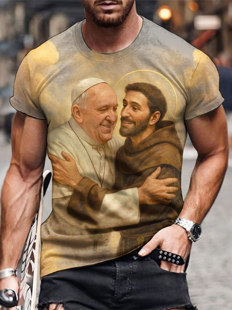 Men's Lord Hugs Dad Print Short Sleeve Round Neck Cotton T-Shirt