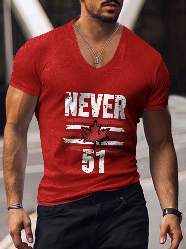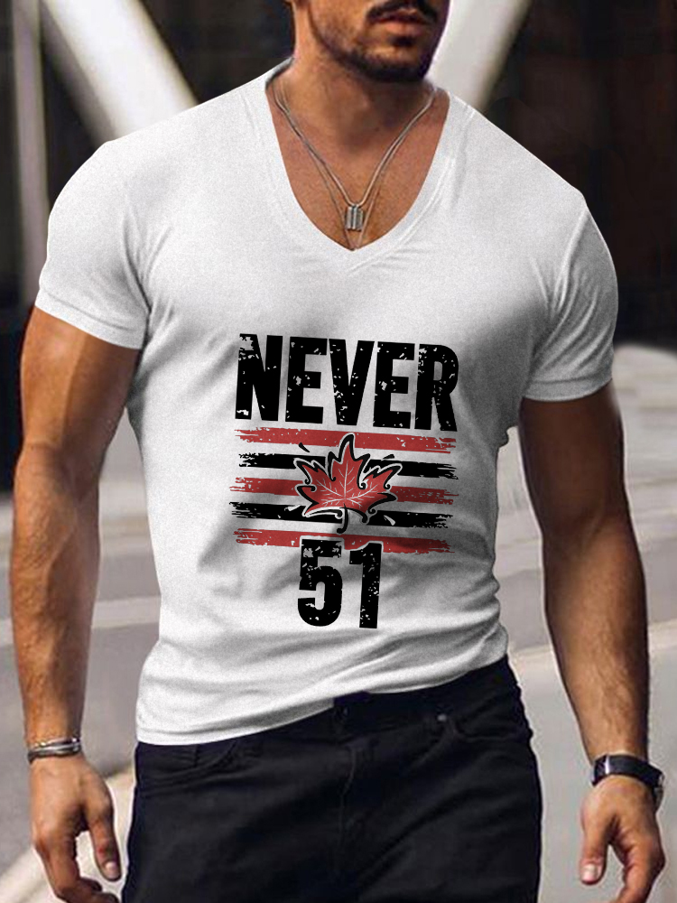 Men's Never Be The 51st State Short Sleeves V-Neck Pure Cotton T-Shirt