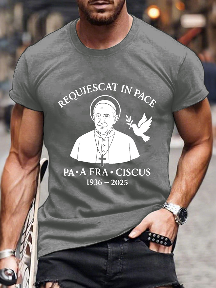 Men's Requiescat In Pace Print Short Sleeve Round Neck Cotton T-Shirt 9532256