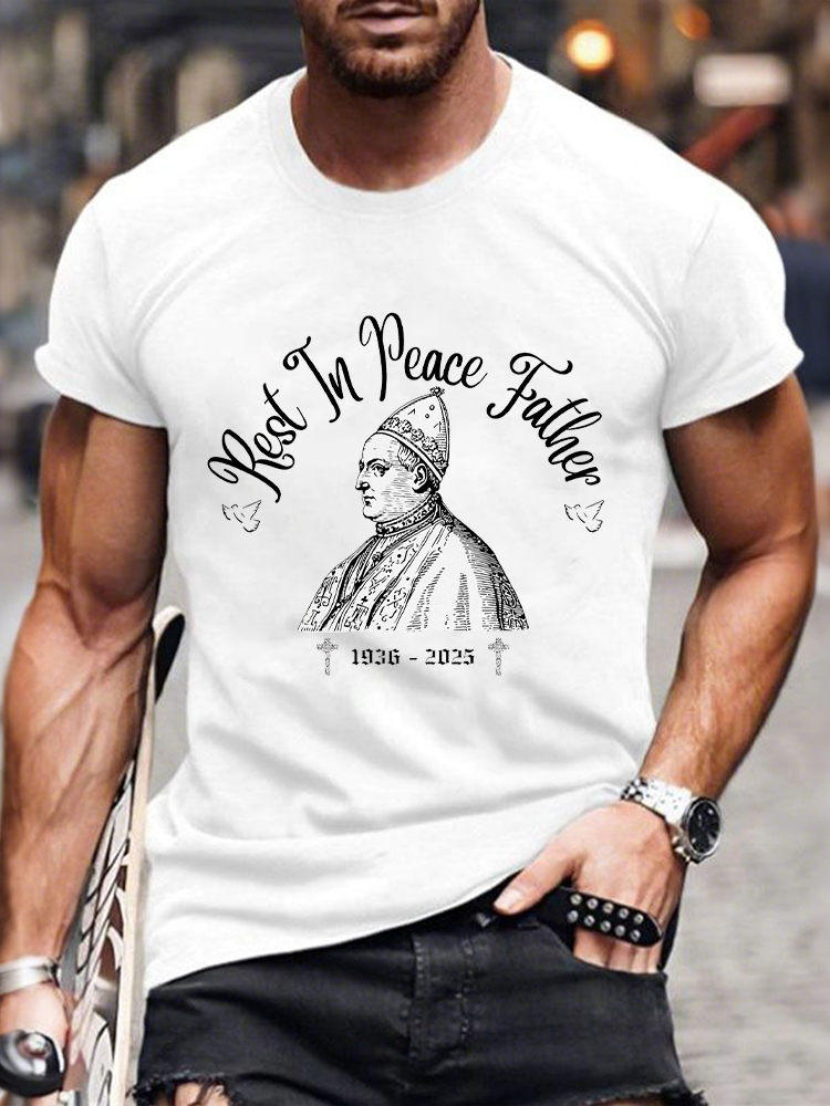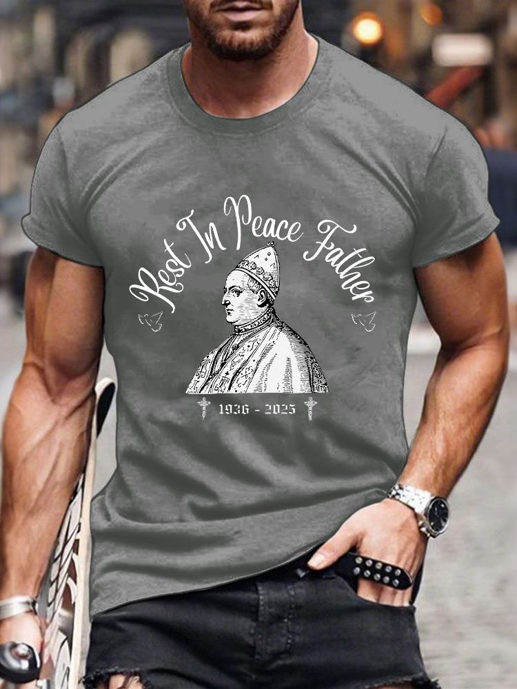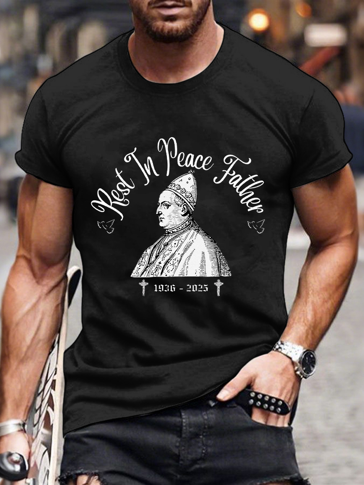 Men's Rest In Peace Father 1936-2025 Print Short Sleeve Round Neck Cotton T-Shirt