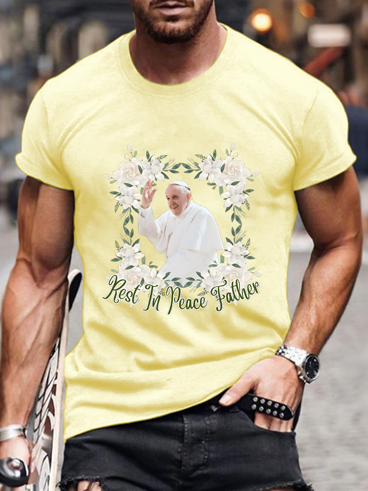 Men's Rest In Peace Father Print Short Sleeve Round Neck Cotton T-Shirt 9535708