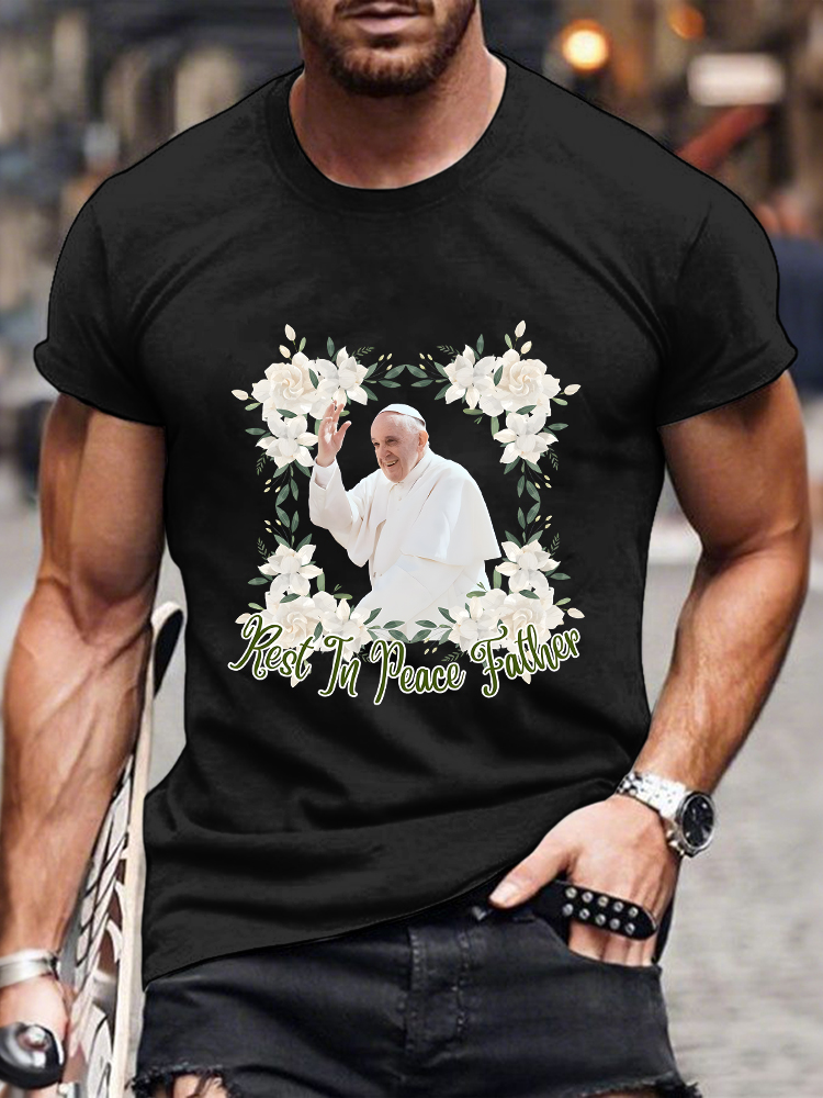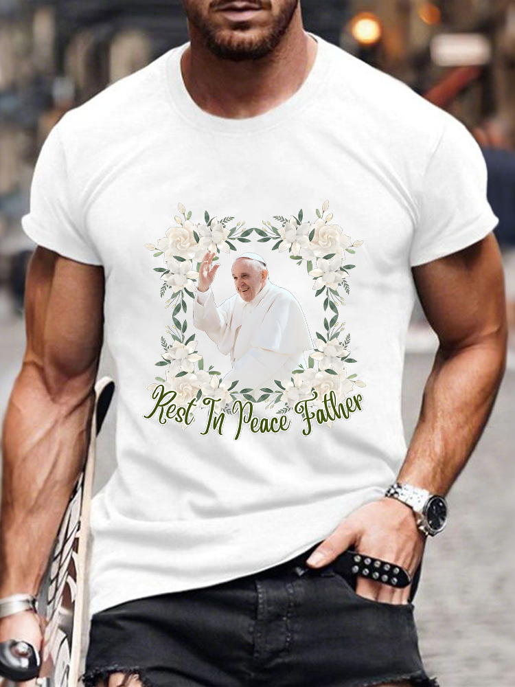 Men's Rest In Peace Father Print Short Sleeve Round Neck Cotton T-Shirt