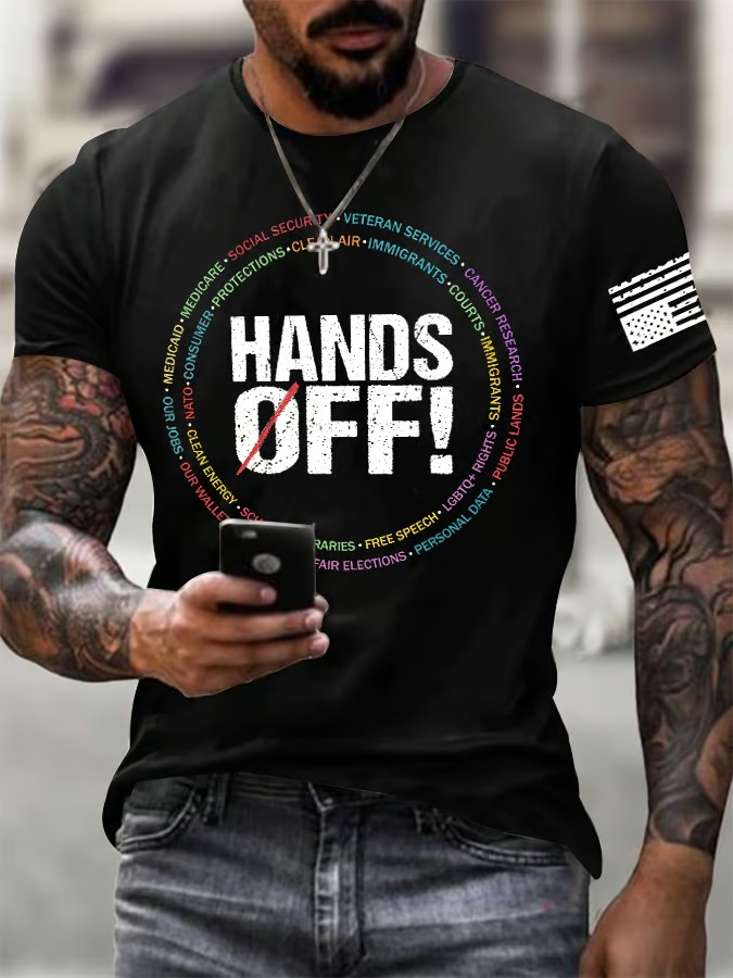 Men'S Retro Hands Off Protest Print T-Shirt 9528264