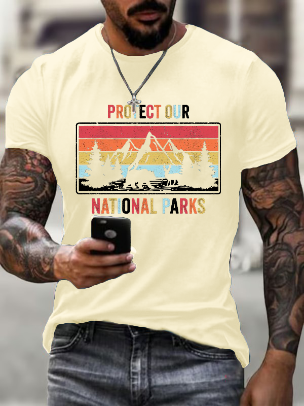 Men'S T-Shirt Cotton Men'S Vintage Preserve Our National Park Printed Casual Crew Collar T-Shirt 9523166