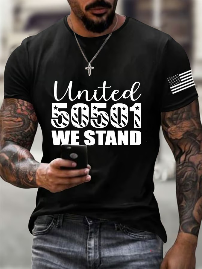 Men'S T-Shirt Men'S 50 Protest 50 States 1 Movement Printed T-Shirt Round Neck Pure Cotton Short Sleeve 9524514