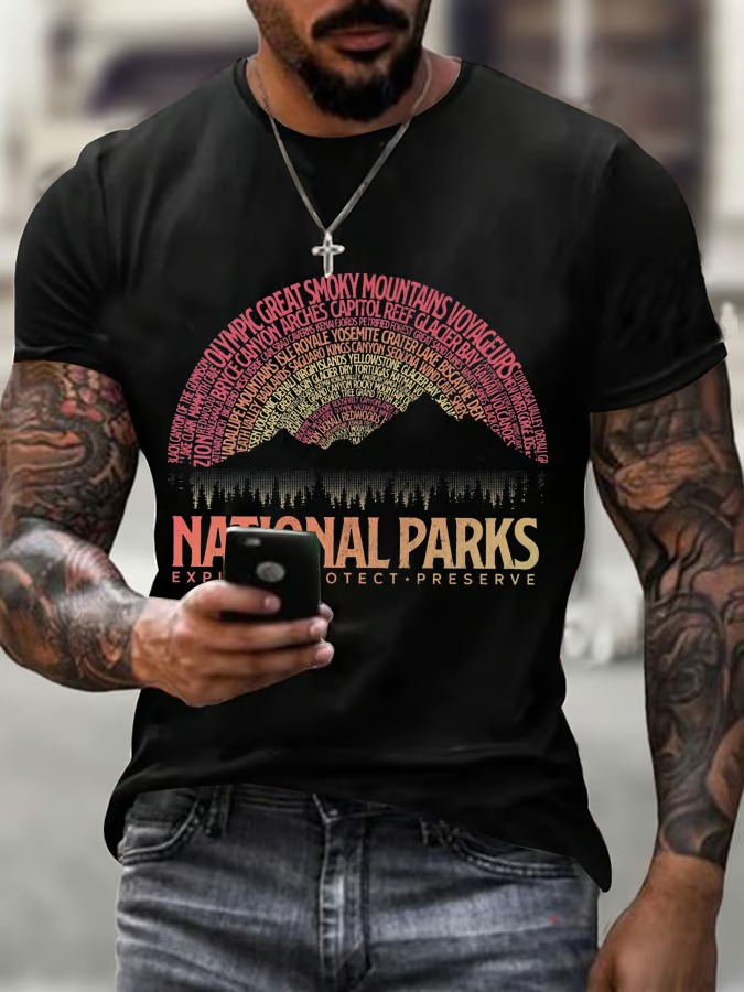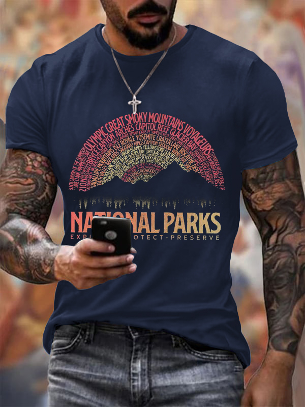 Men'S T-Shirt Men'S Hotspots 63 National Parks Explore, Protect, And Preserve Printed T-Shirts 9522734