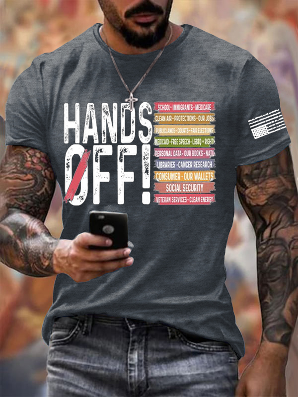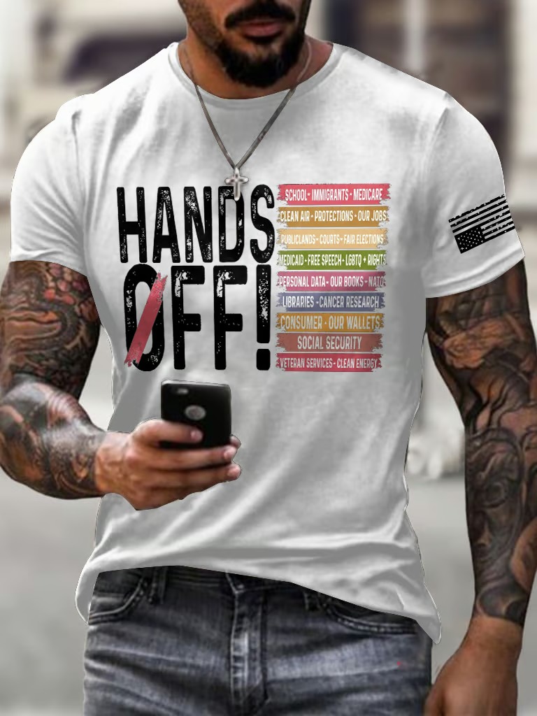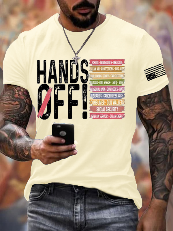 Men'S T-Shirt Men'S Retro Hands Off Protest Print T-Shirt