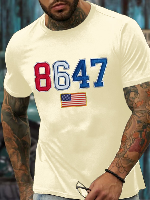 Men'S T-Shirt Men'S Vintage 8647 Flag Print T-Shirt Round Neck Cotton Short Sleeves