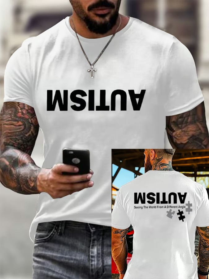Men'S T-Shirt Retro Autism: See The World From A Different Perspective Printed Crewneck T-Shirt Pure Cotton
