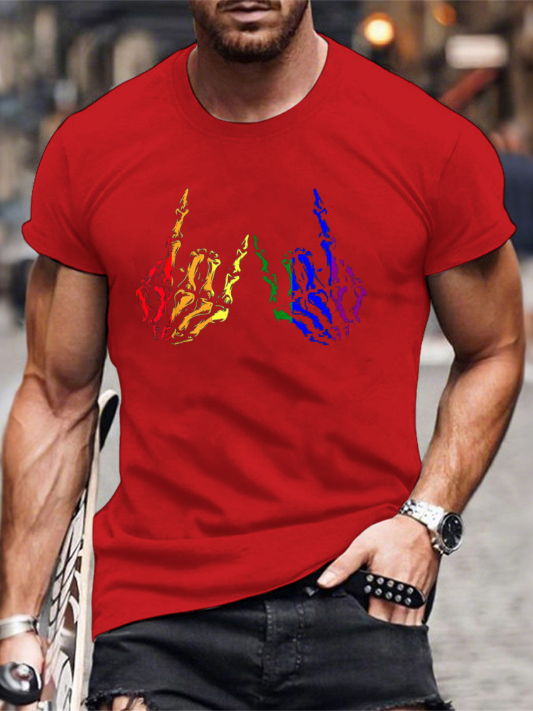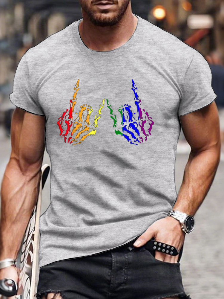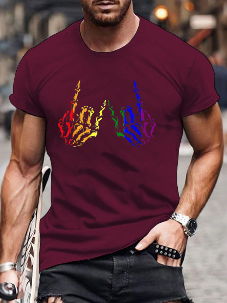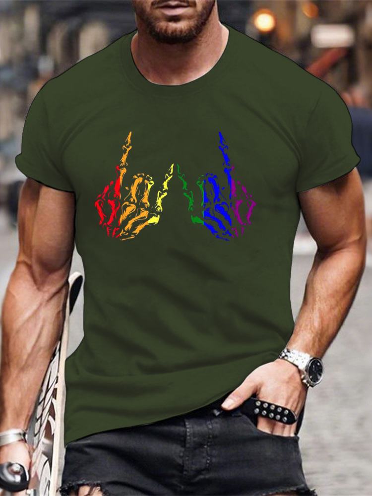 Men'S T-Shirt Skeleton Rock Hand LGBT Q Gay Pride Rainbow Flag Ally T Shirt