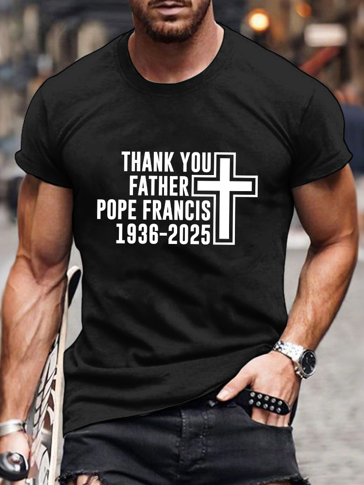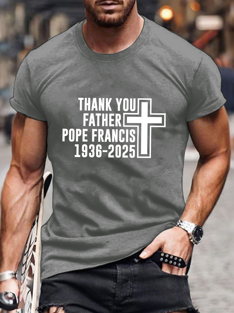 Men's Thank You Father 1936-2025 Print Short Sleeve Round Neck Cotton T-Shirt 9535538