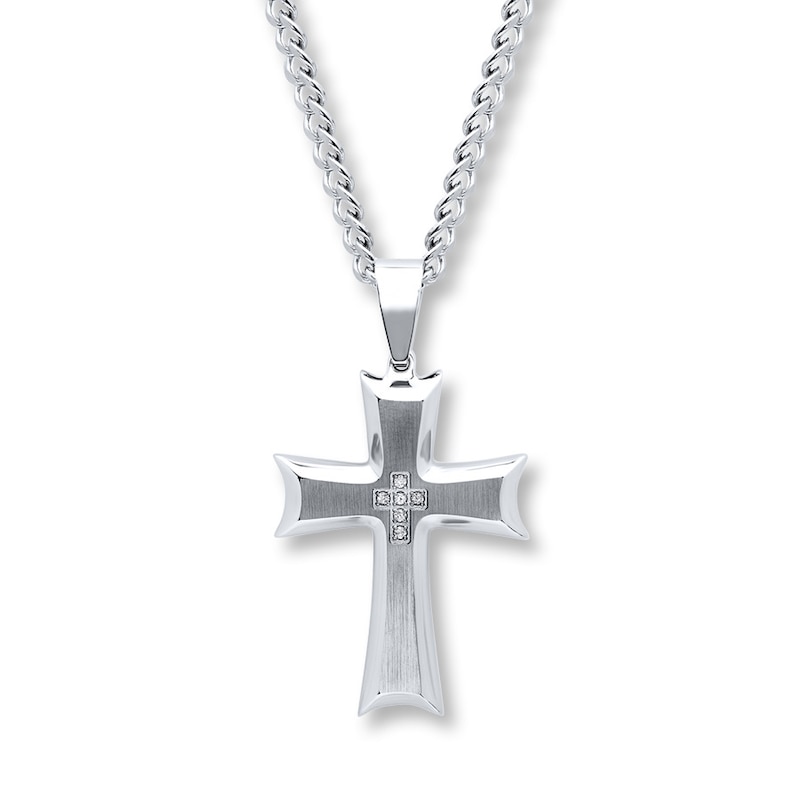 Men's Diamond Cross Necklace 1/20 ct tw Round-cut Stainless Steel 24"