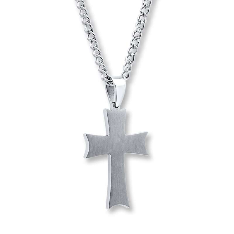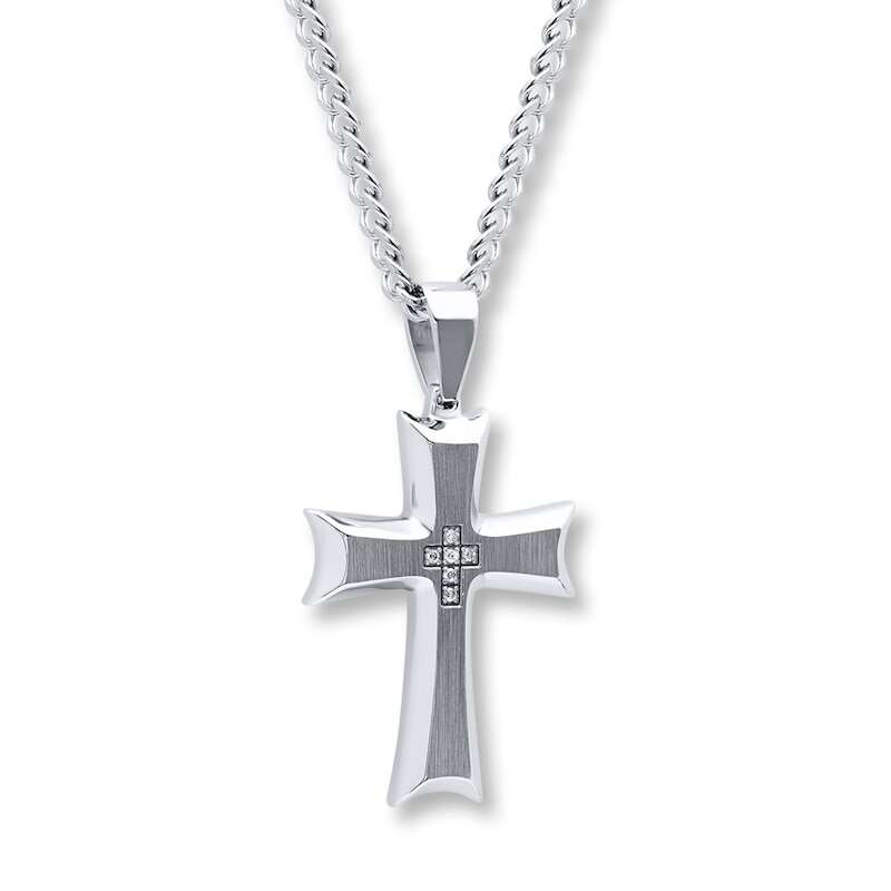 Men's Diamond Cross Necklace 1/20 ct tw Round-cut Stainless Steel 24"